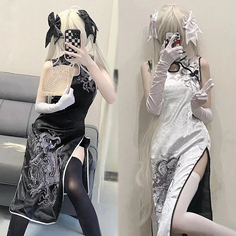 現物縁の空春日野穹妹cosチャイナドレスアニメのキャラクターが要素のコスプレ衣装を演じて扇子を送ります。