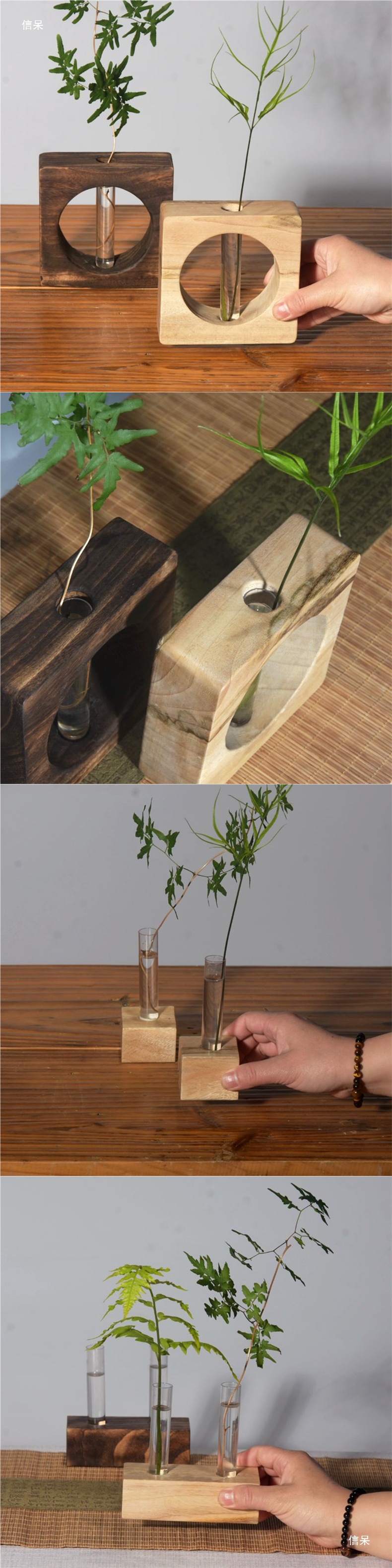 日本式創意レトロ実木小花瓶ミニ花器禅意茶道デスクトップ生け花乾燥花水培置物