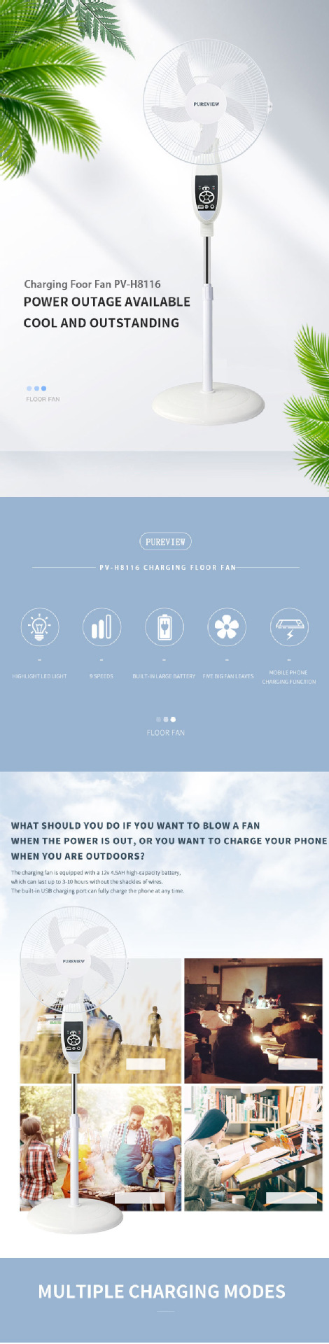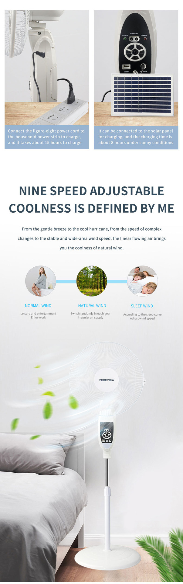 太陽エネルギーリモコン充電着地ファン大容量電池充電立扇対外貿易人気特価16インチ