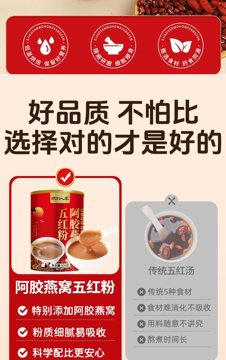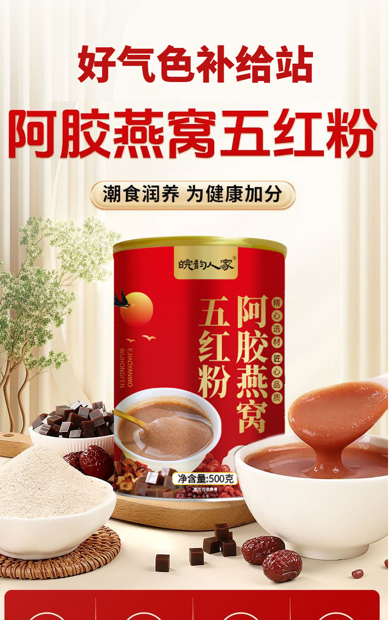 阿胶燕窝五红粉500克 罐装五红汤 红枣枸杞粉 五谷杂粮代餐粉即食