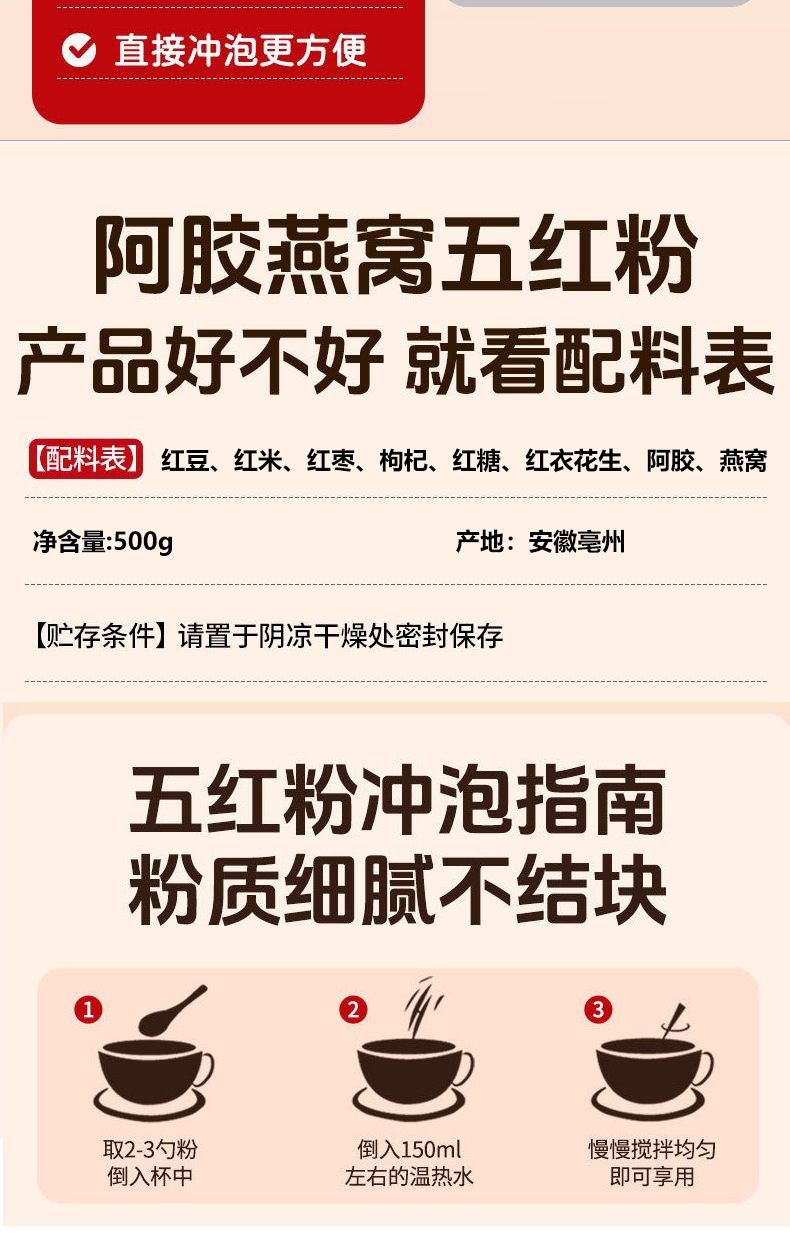 阿胶五紅粉メーカー直販枸杞紅棗赤豆500g朝食沖調代加工五紅粉代食粉