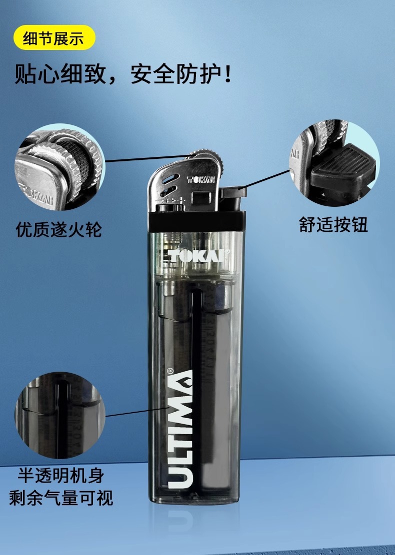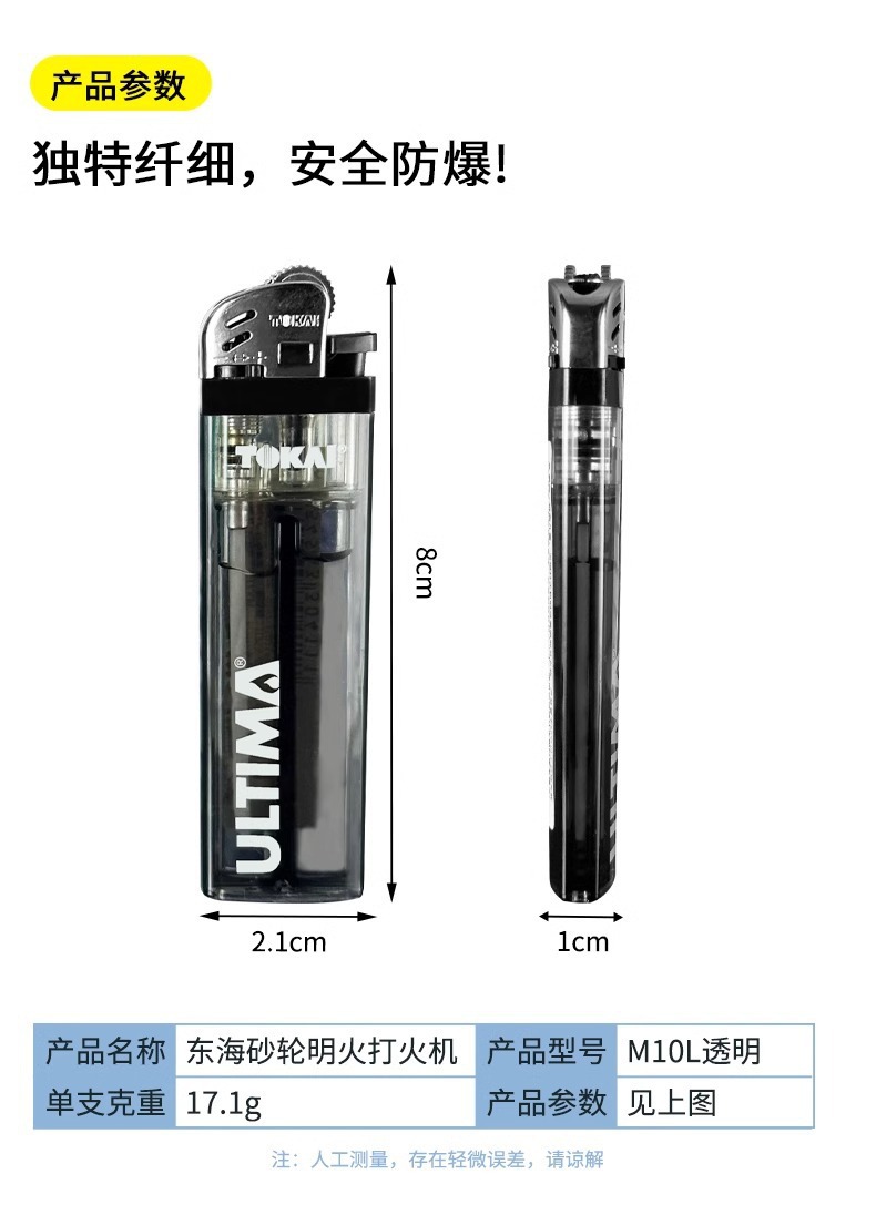 TOKAI日本东海M05黑色透明长条防爆一次性创意家用滑轮火石打火机