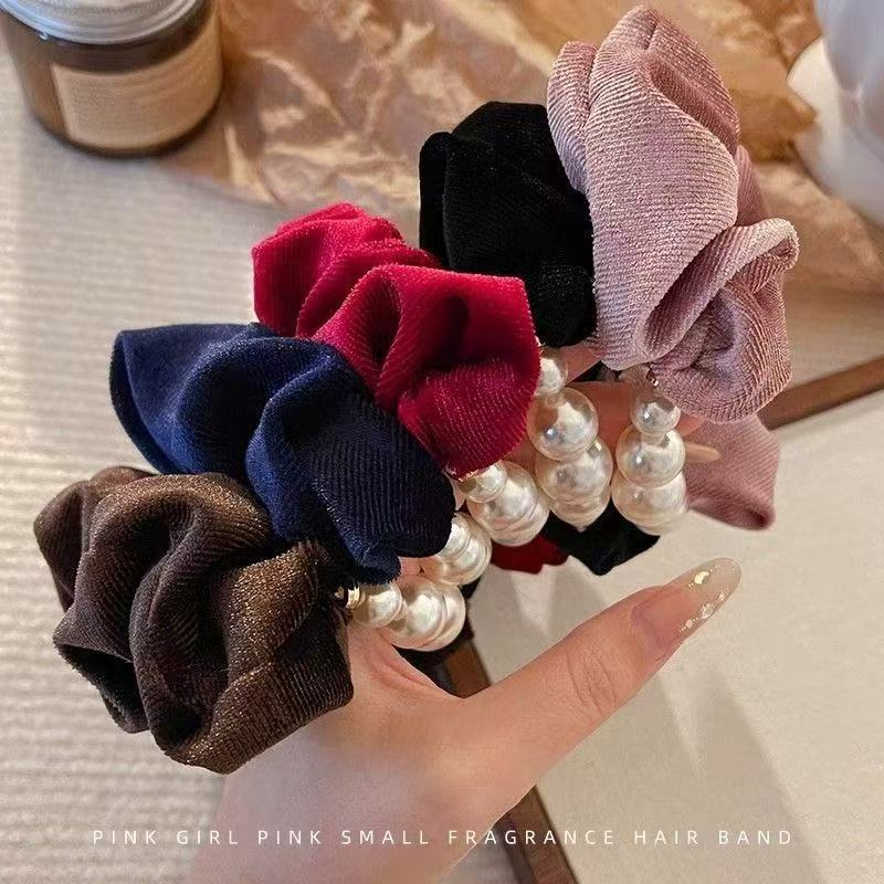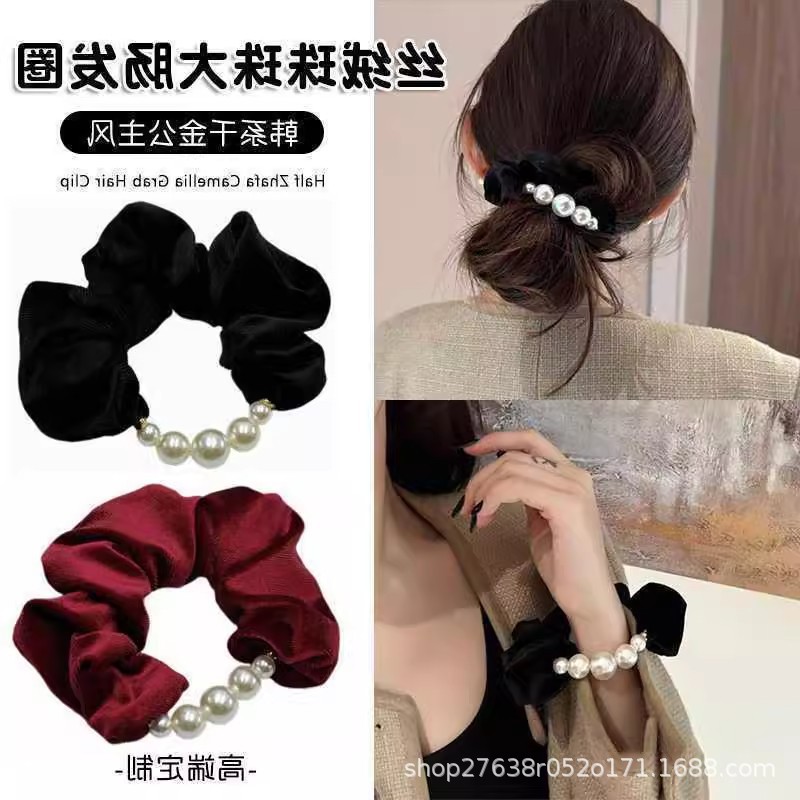 韩系千金姫风ベルベットビーズ大肠シュシュ高级感ローファー髪ひも気质髪ひも髪饰り