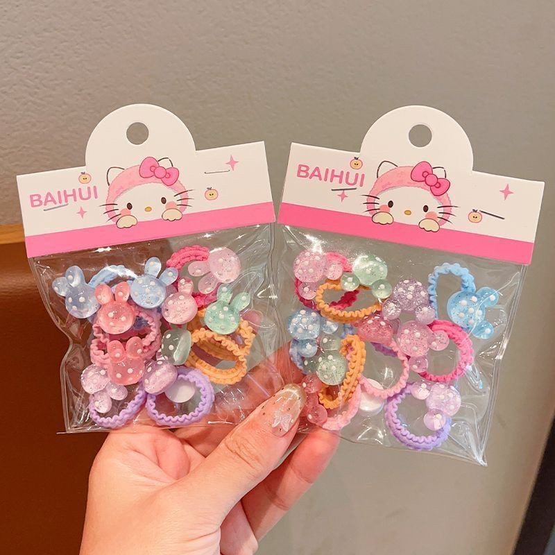 可爱波点袋装儿童发圈高弹力女童头饰发绳爱心五角星发夹全包鸭夹