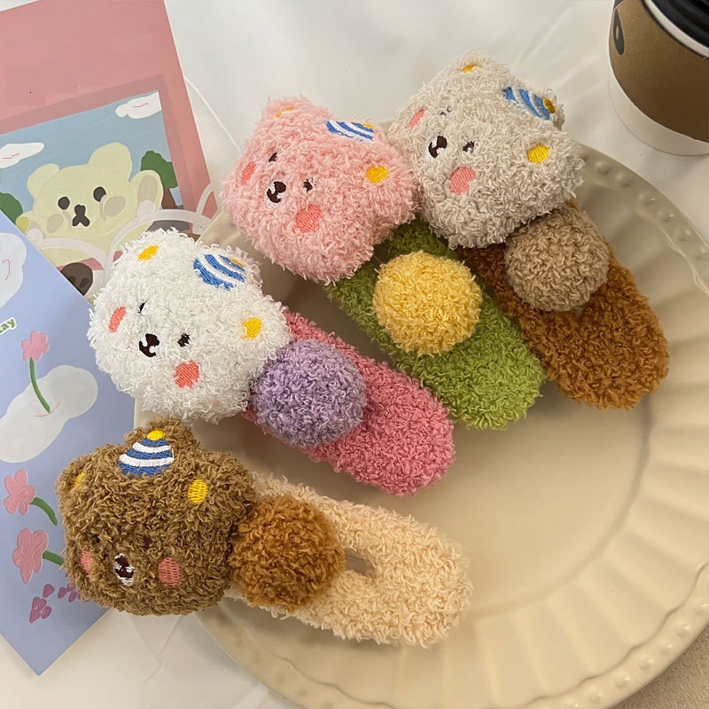 秋冬毛绒可爱小熊发夹丑萌曲奇饼干大号鸭嘴夹洗脸发饰少女侧边夹