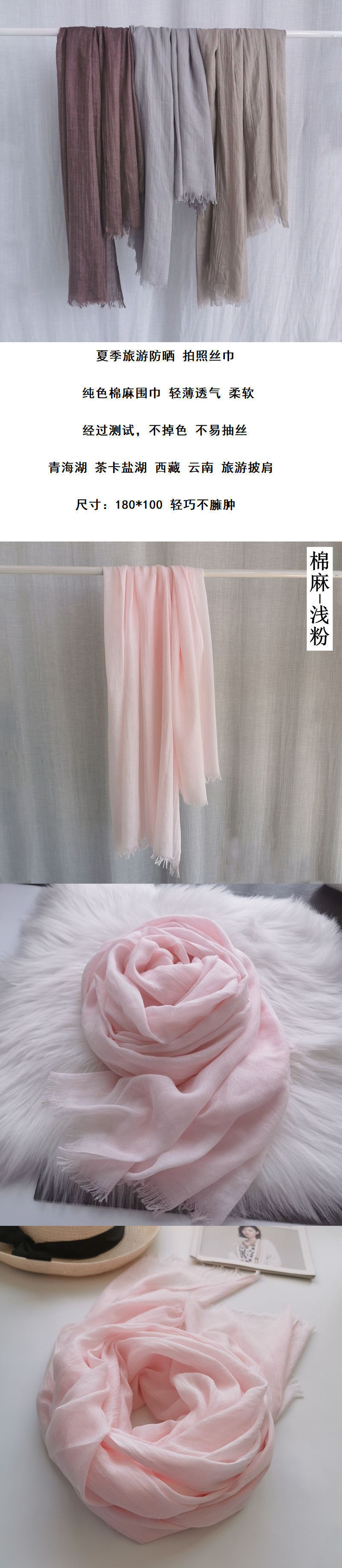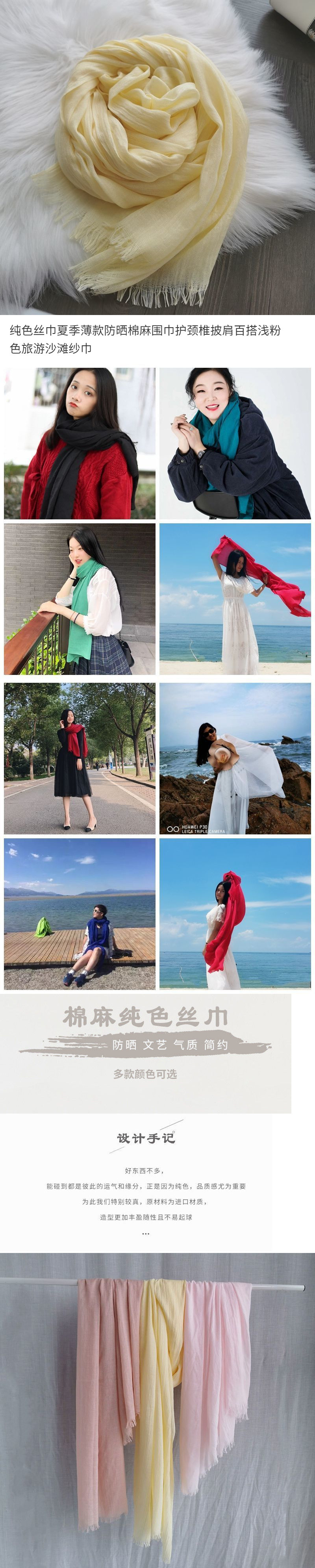 純色のシルクタオル夏の薄い日焼け止め綿麻マフラー頚椎保護ストール