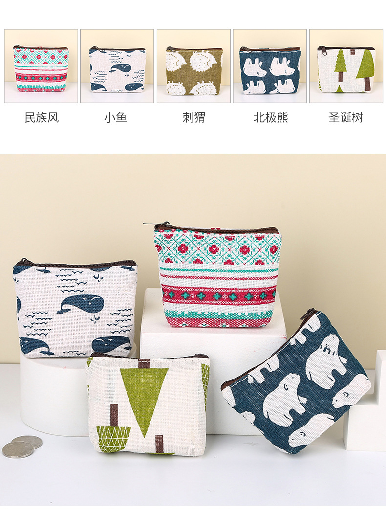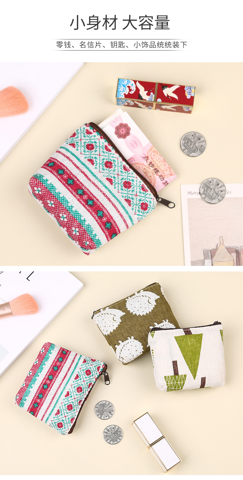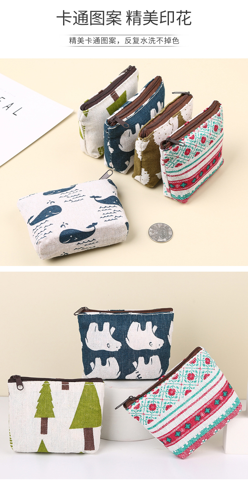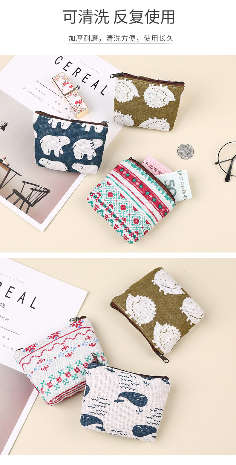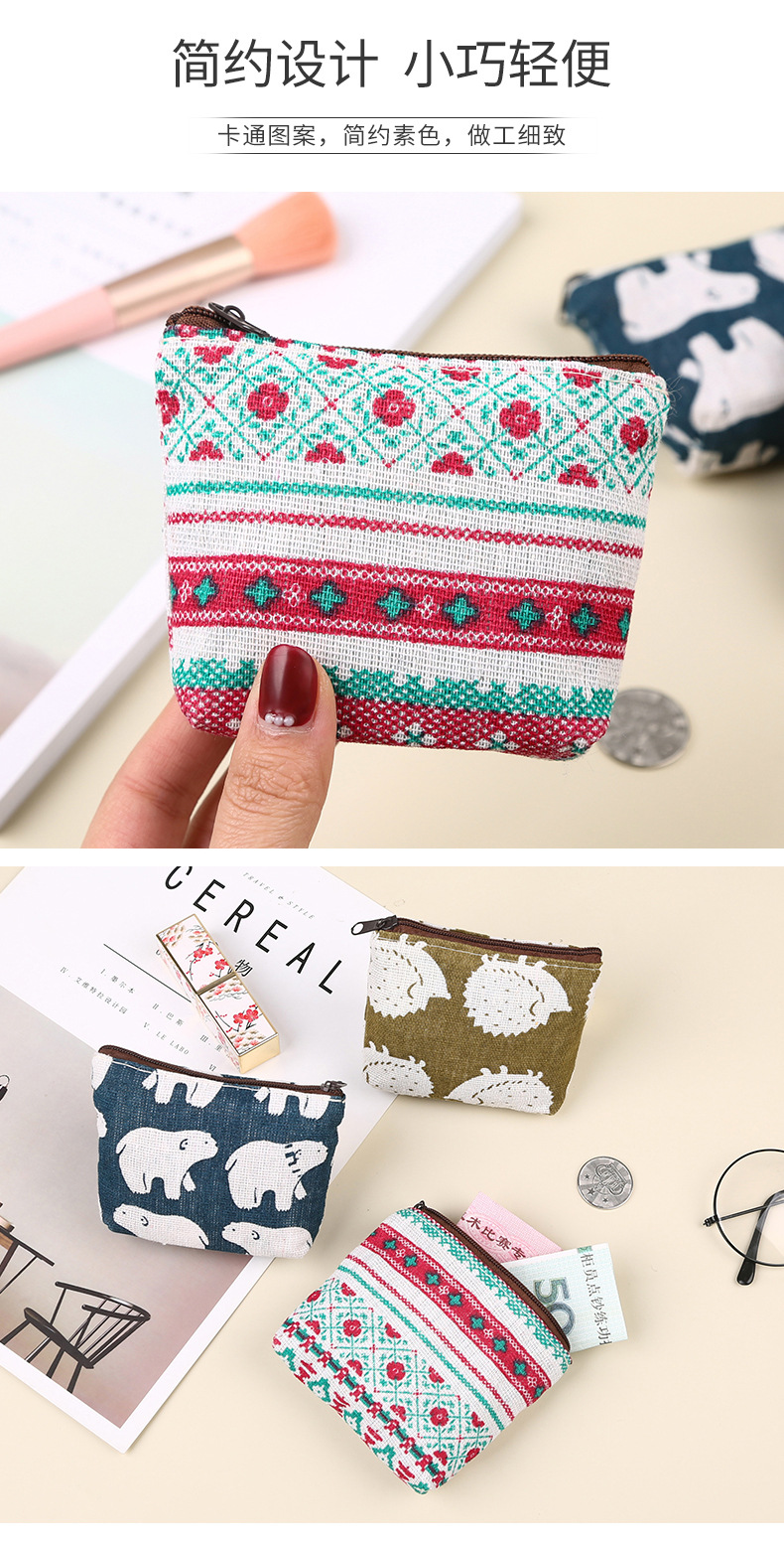 綿麻小清新レトロ韓国版小銭入れコインバッグシンプルファッションキャンバス漫画キーかわいいカードバッグ