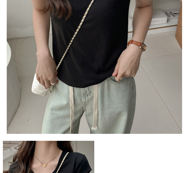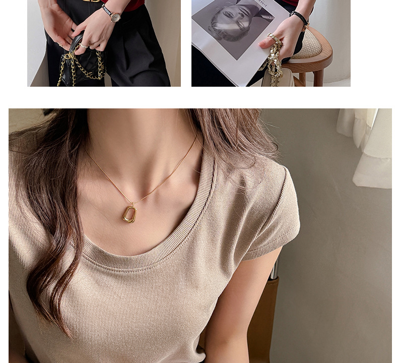 韓国系純綿の四角い襟の中に、カーディガンの肩の半袖tシャツの女性のギャルファッションの高級感があります。