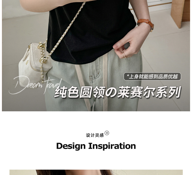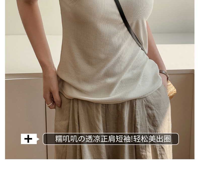 ライゼル天糸新型正肩半袖tシャツ女性式肩幅スリム高級デザイン感小飛袖上着