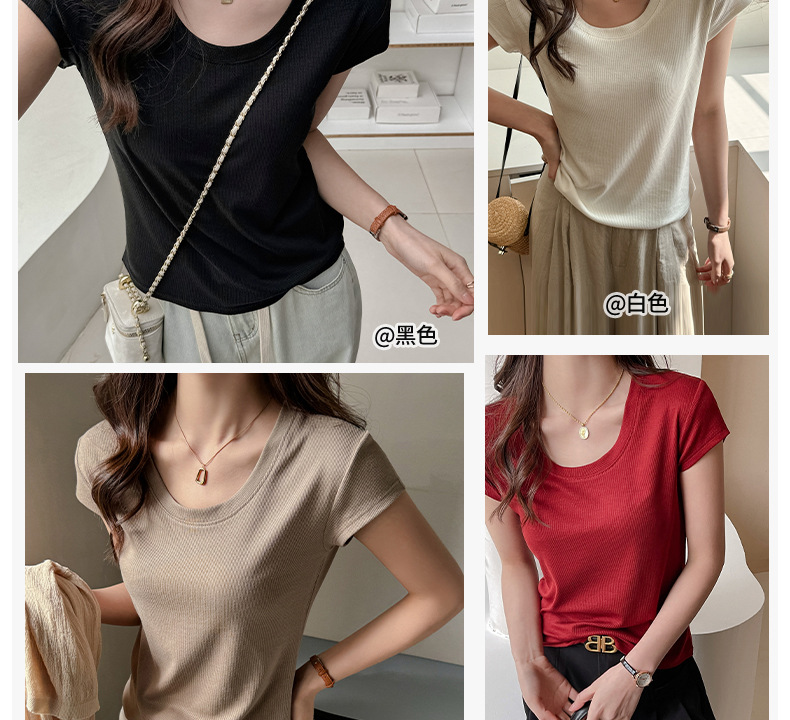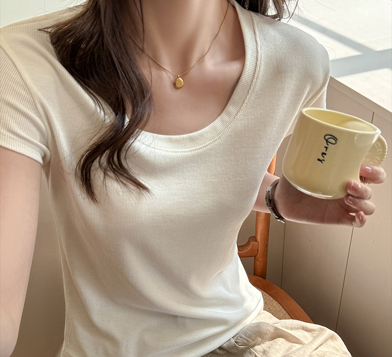 クラシックピュアコットンラウンドネック右肩半袖Tシャツ女性用2025新作T春夏ウェアラブルスリムボトムシャツ