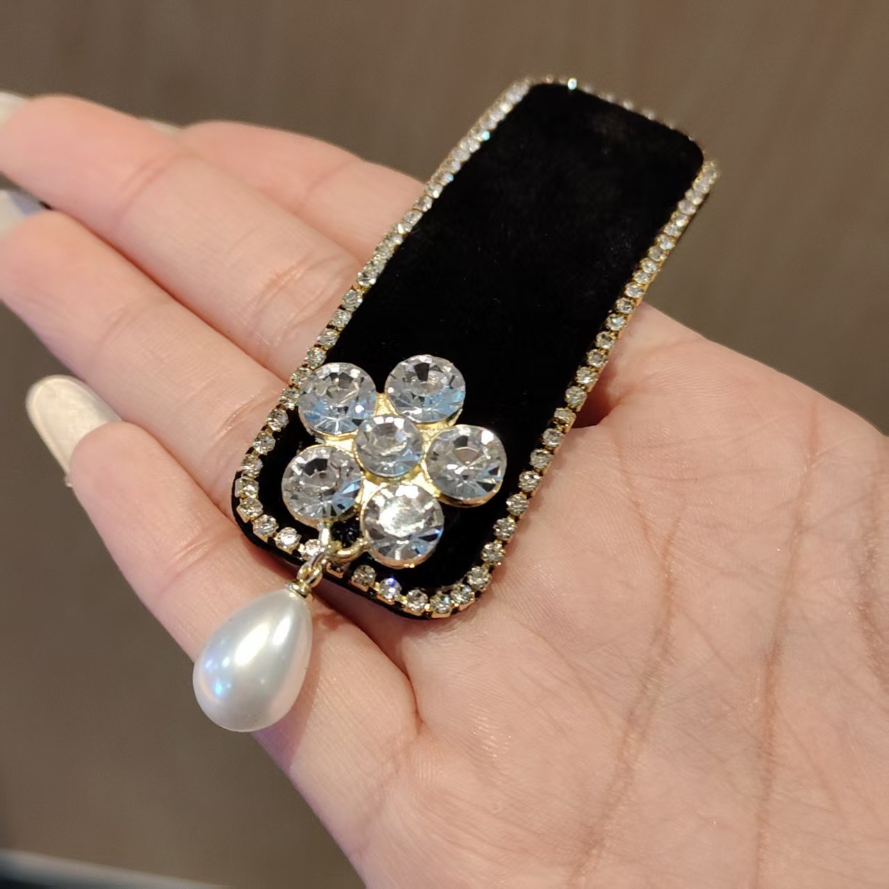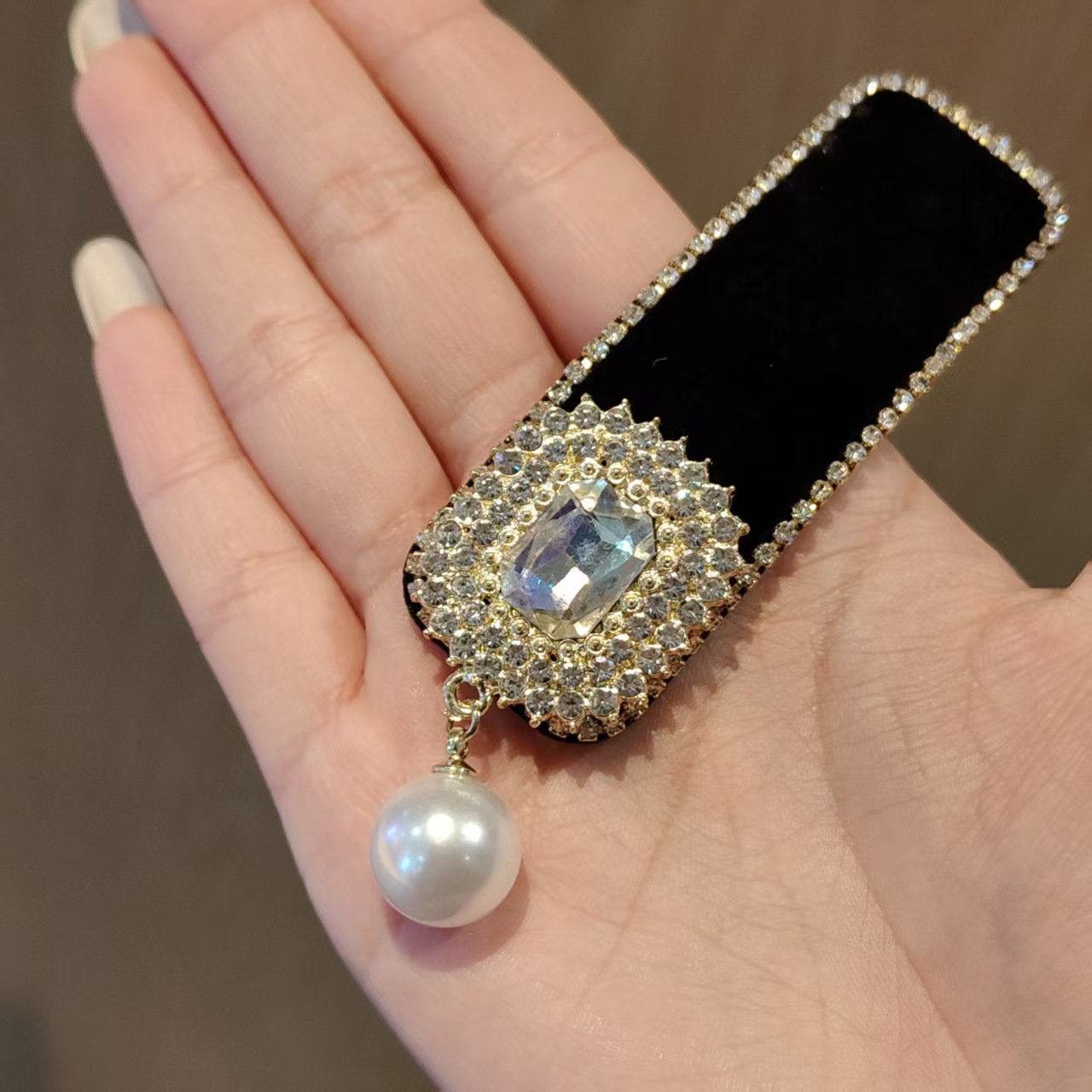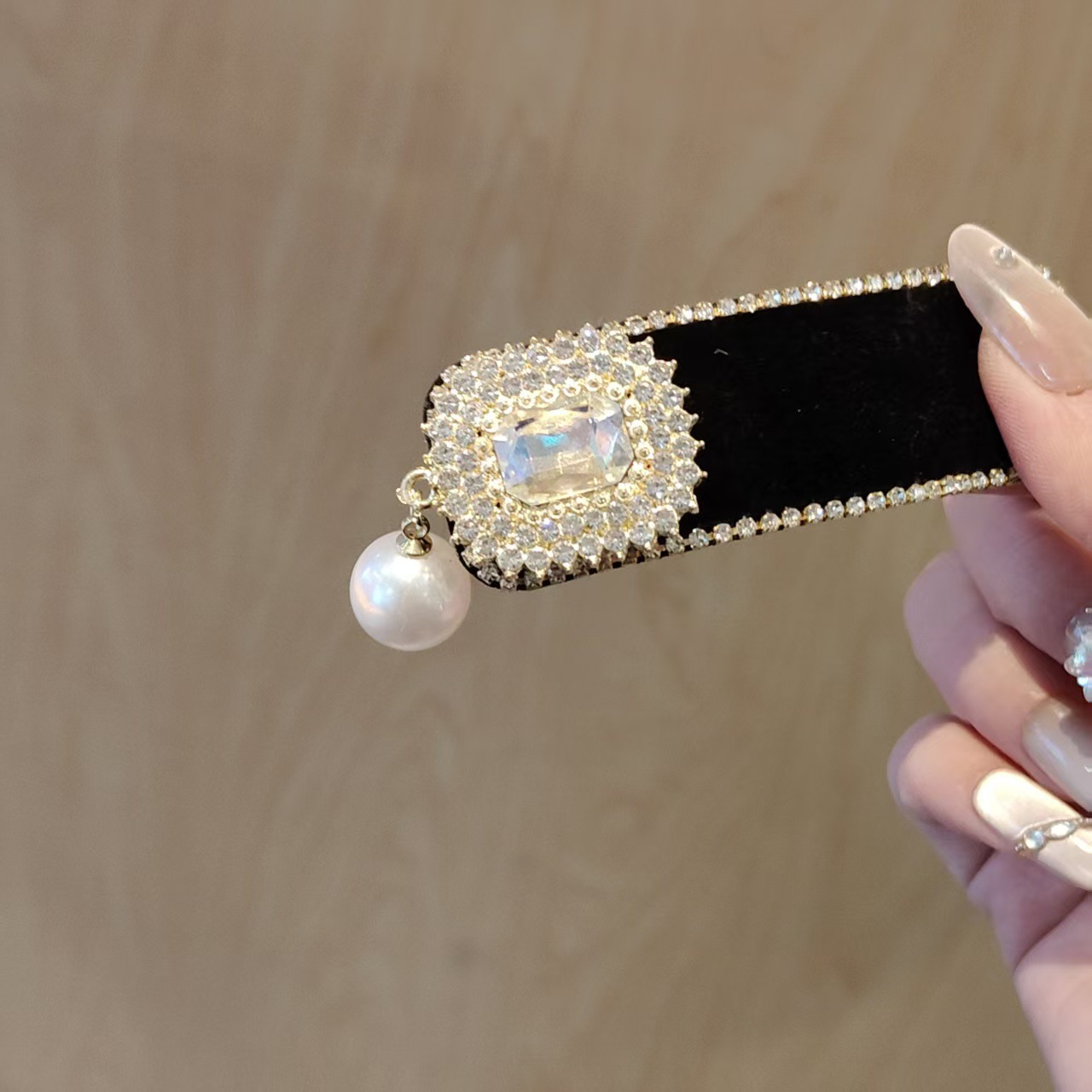 韓国版の新型レトロなドリルの黒いベルベットのヘアピンの前髪のサイドのトップのヘアピンのbbクリップの一字のクリップの頭飾り