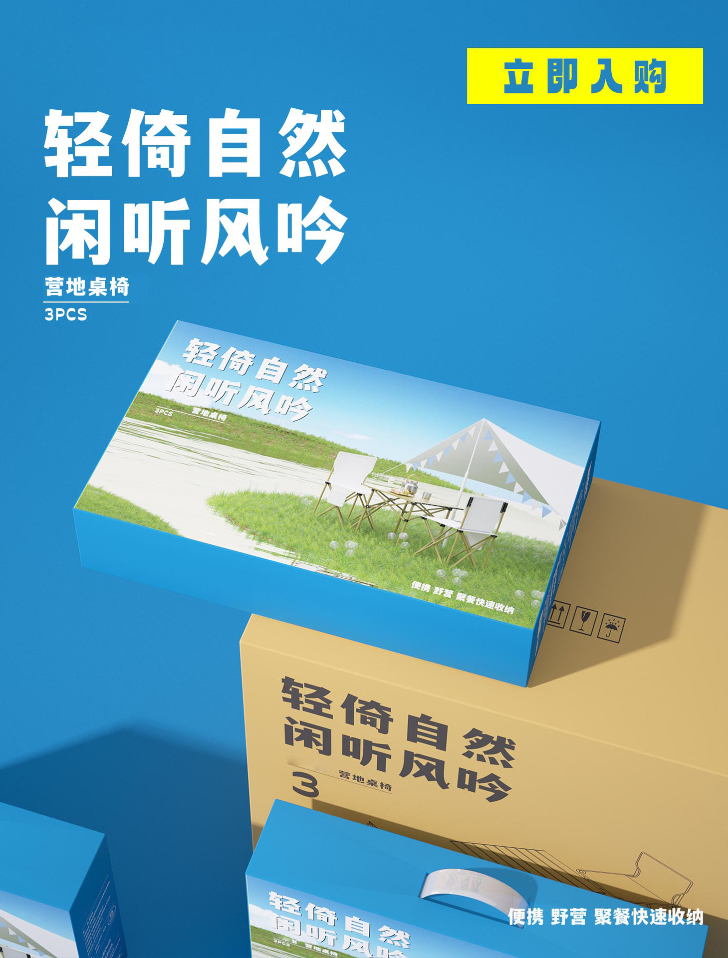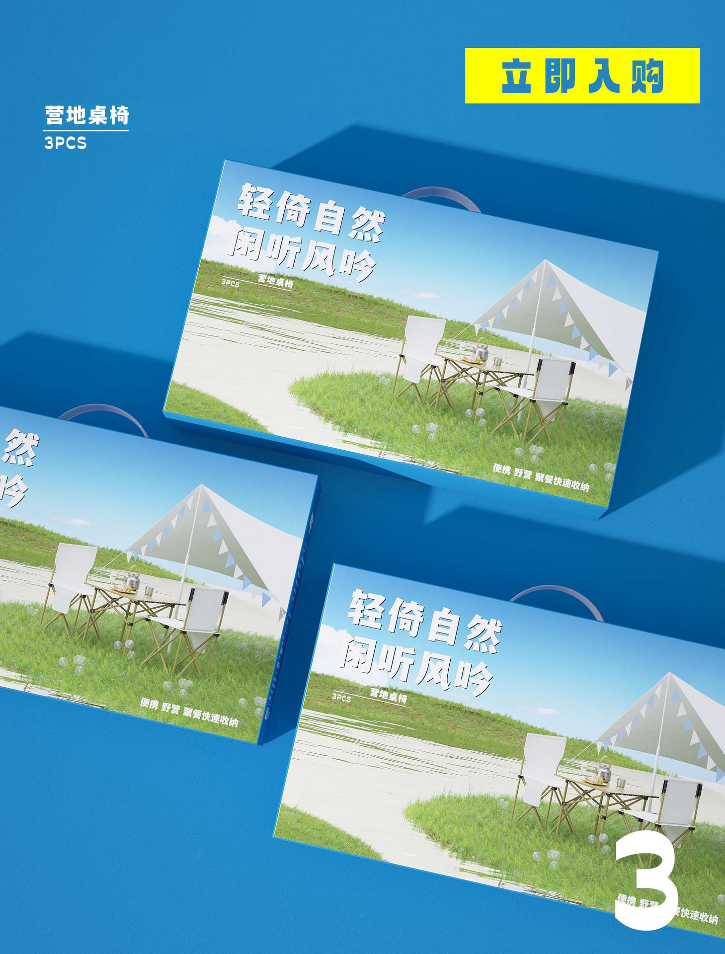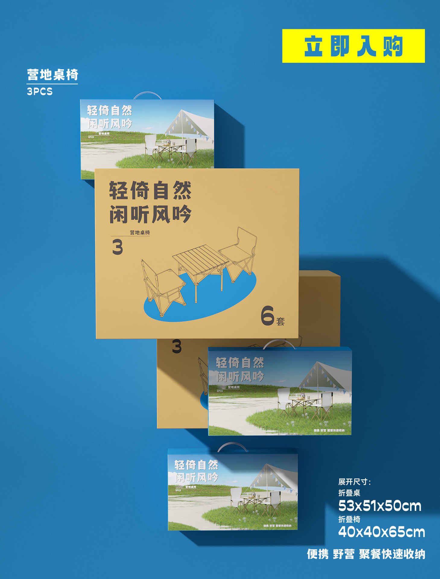 アウトドア3点セット(カラーボックス。1箱6個入り),アウトドア5点セット(カラーボックス。1箱4個入り),キャンピングカー。アウトドアの必需品(シングルセット)