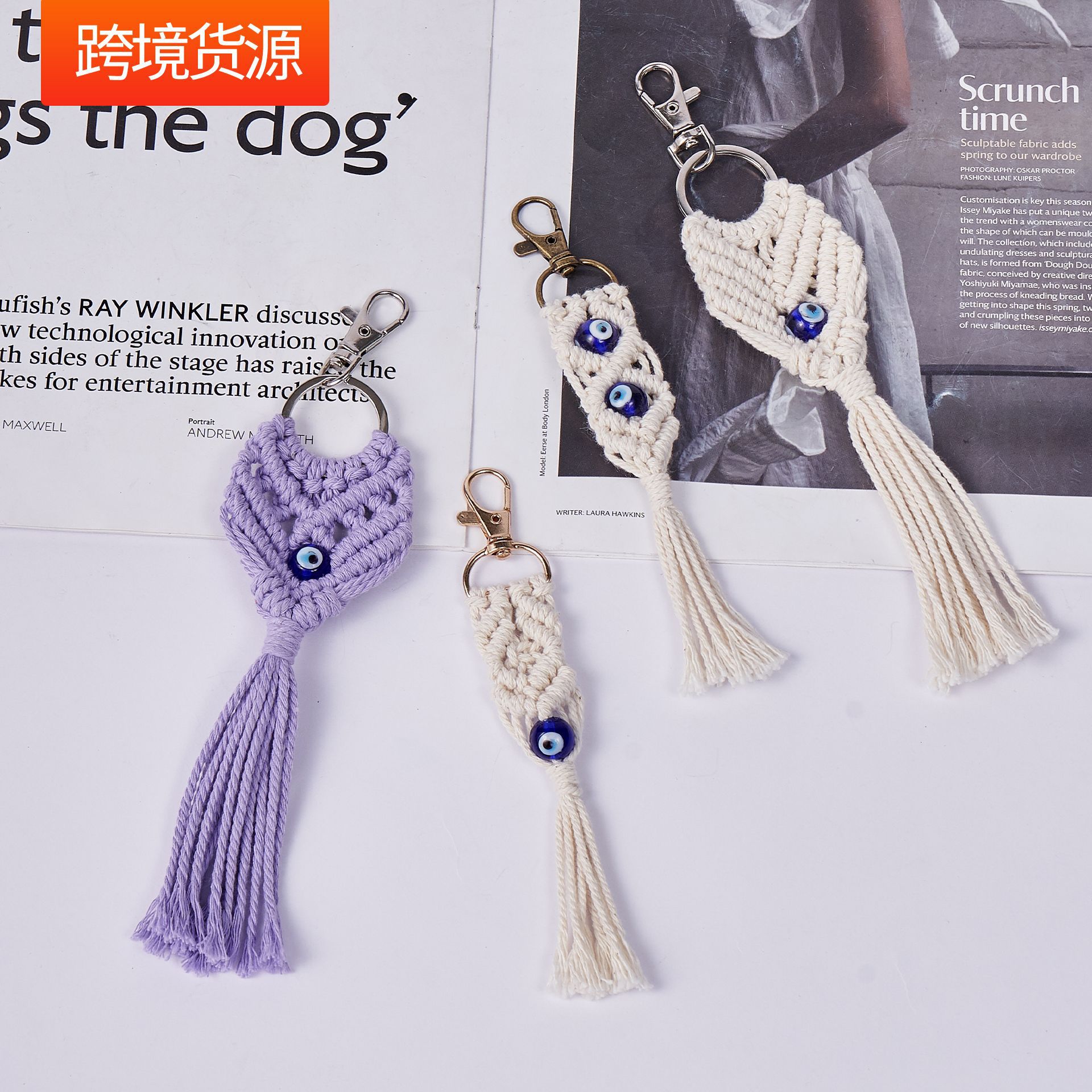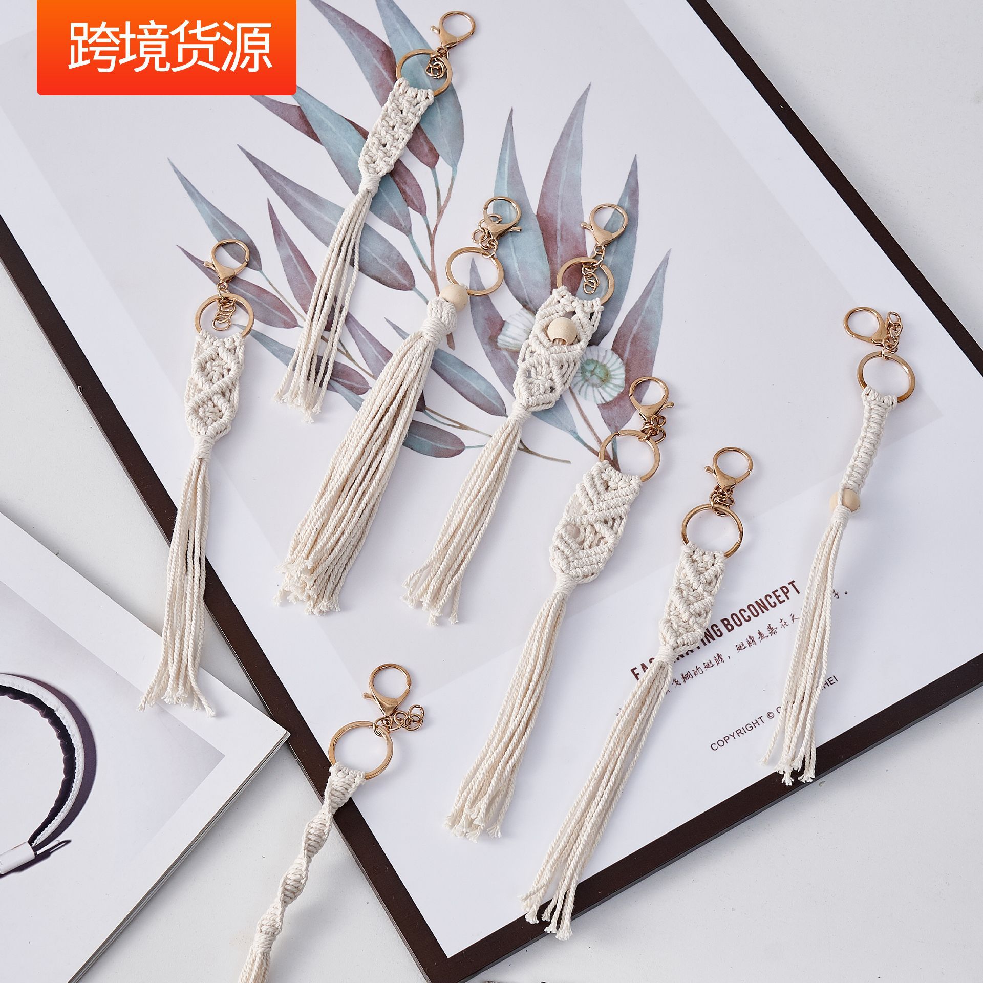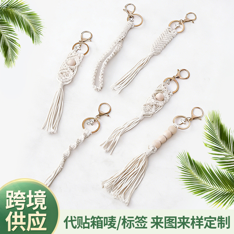 手工编织钥匙扣跨境批发包包挂饰创意挂件手工制作棉绳流苏钥匙扣