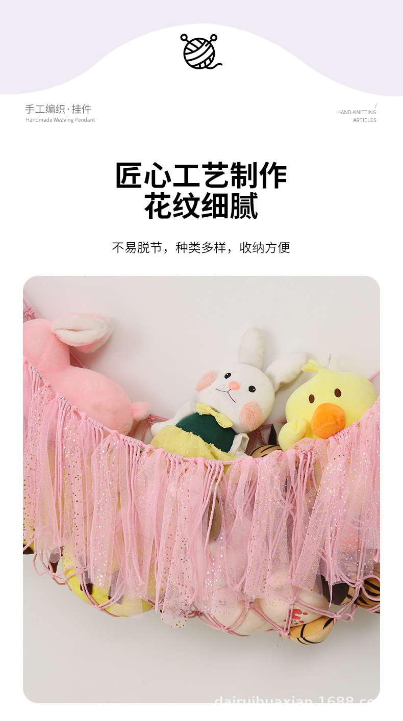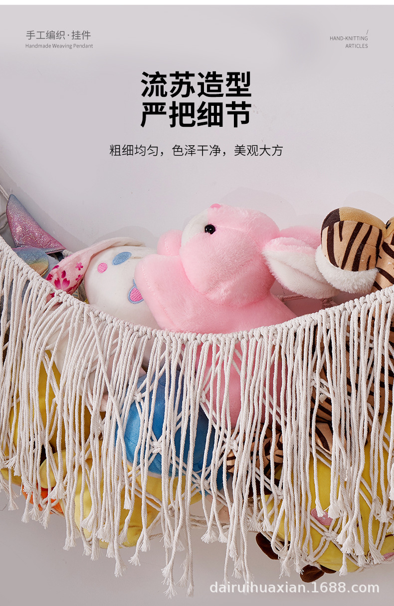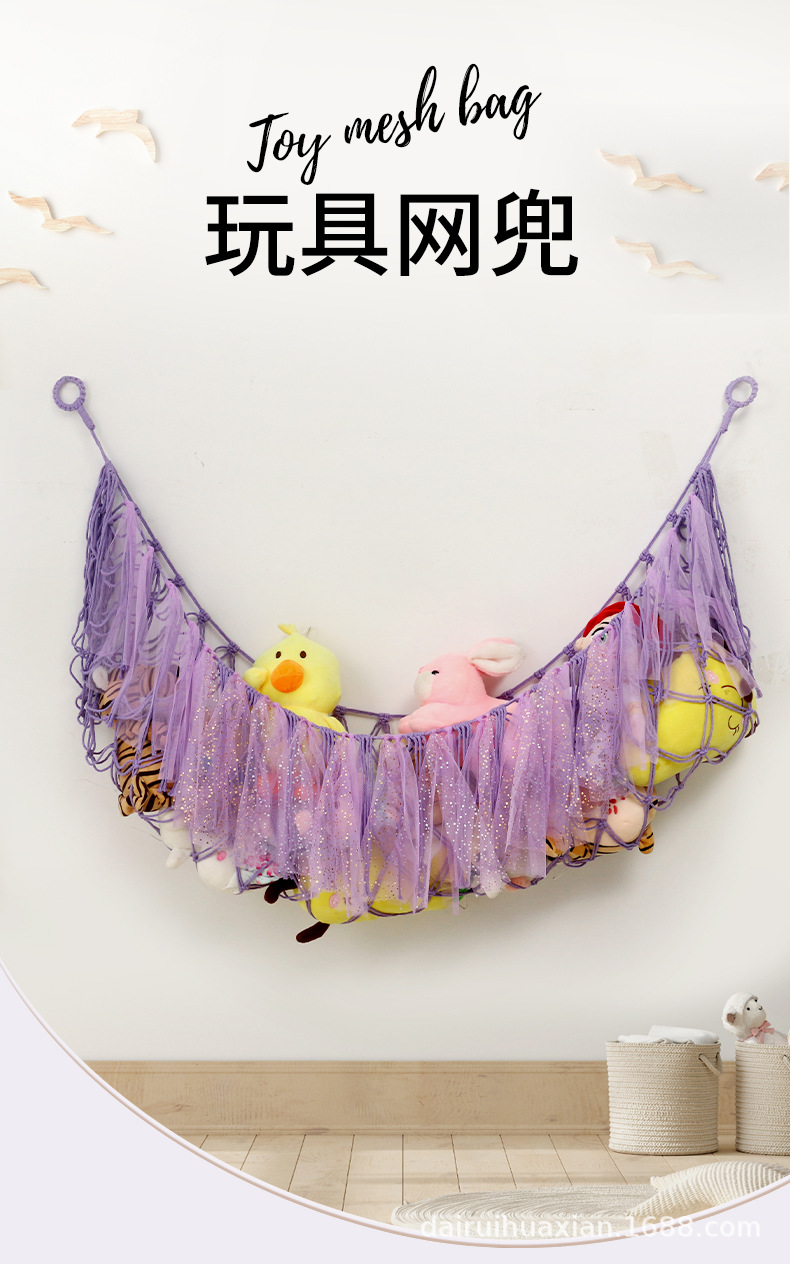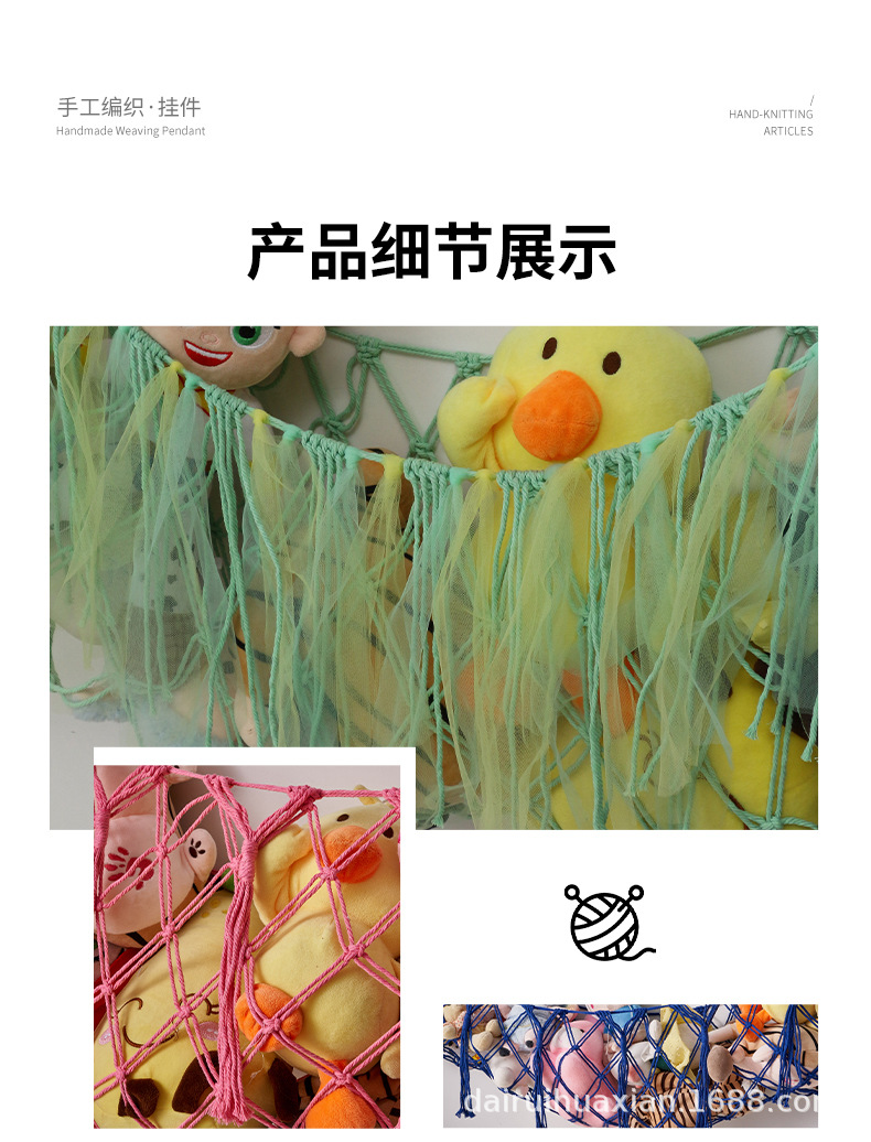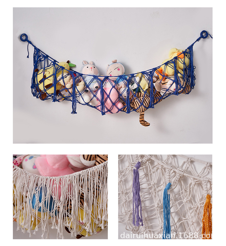 おもちゃのネットポケットは手編みの綿の縄のぬいぐるみの壁のポケットを編んで装飾します。
