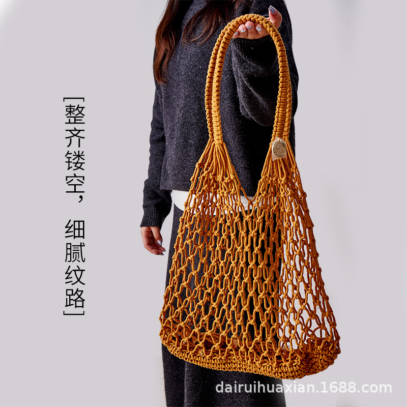 手作り編みバッグ草編み袋透かし彫りメッシュ綿ロープショッピング休暇トートバッグ釣りネットバッグビーチ女性バッグ