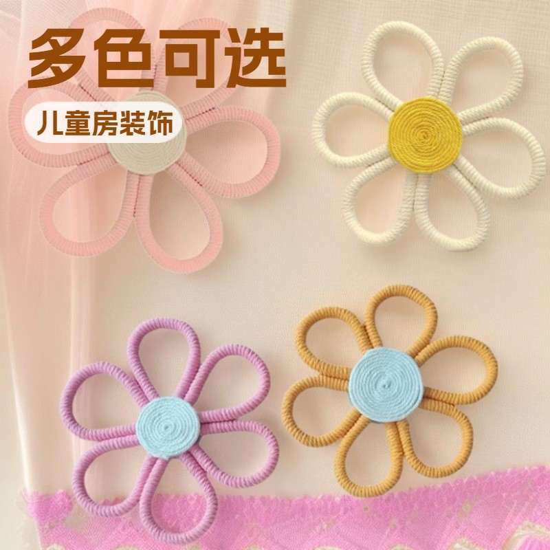 跨境花盆网兜手工编织树叶挂毯波西米亚雏菊小花彩虹小挂件