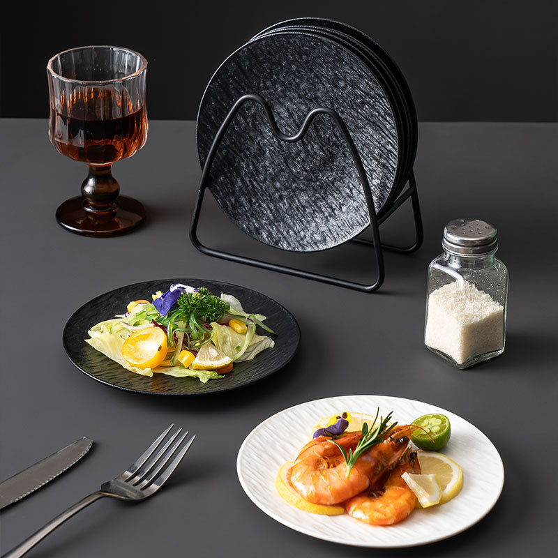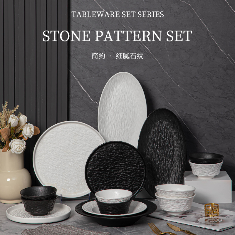 和風白黒高級感クリエイティブ食器セット 陶器ボウル 洋食皿 ステーキ皿 陶器食器
