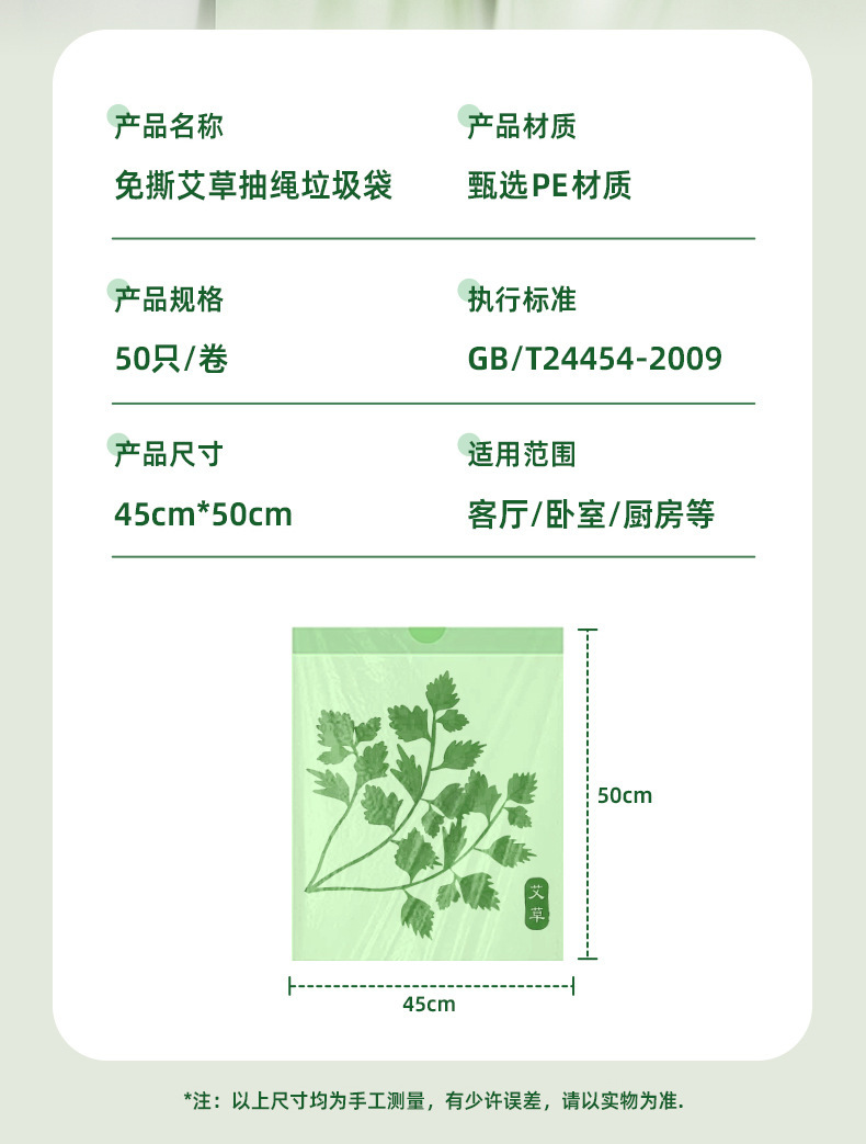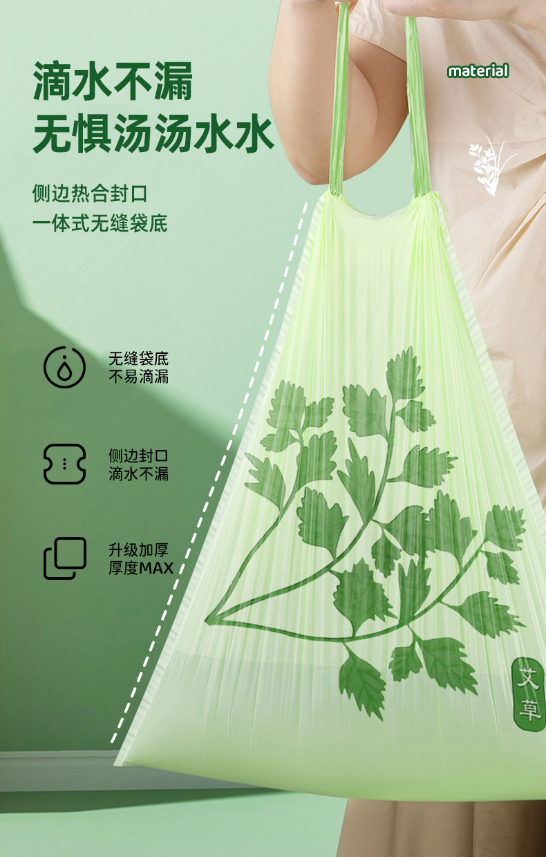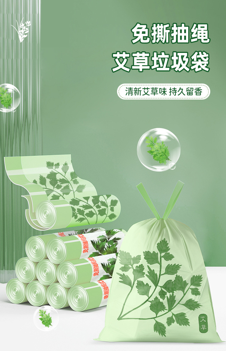 ひも抜き式艾草ゴミ袋家庭用厚手自動収口アロマビニール袋卸売り防蚊