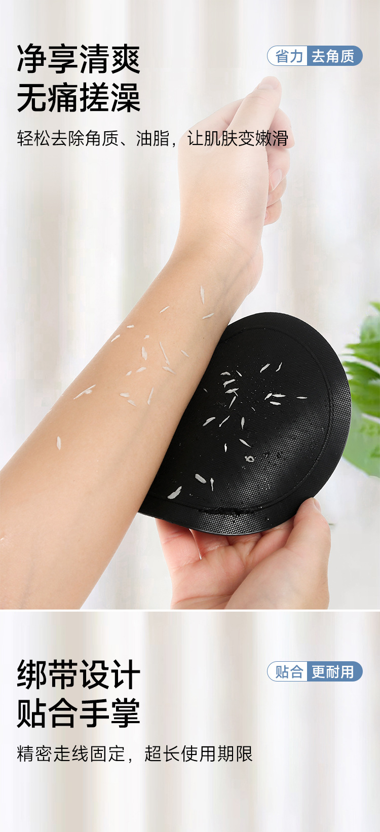 お風呂のお風呂タオルの背中に泥をこすり、無痛のお風呂タオルをこすります。