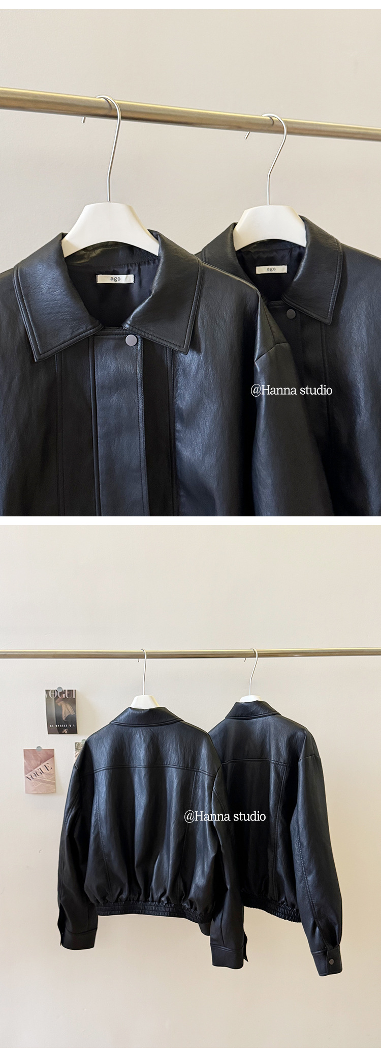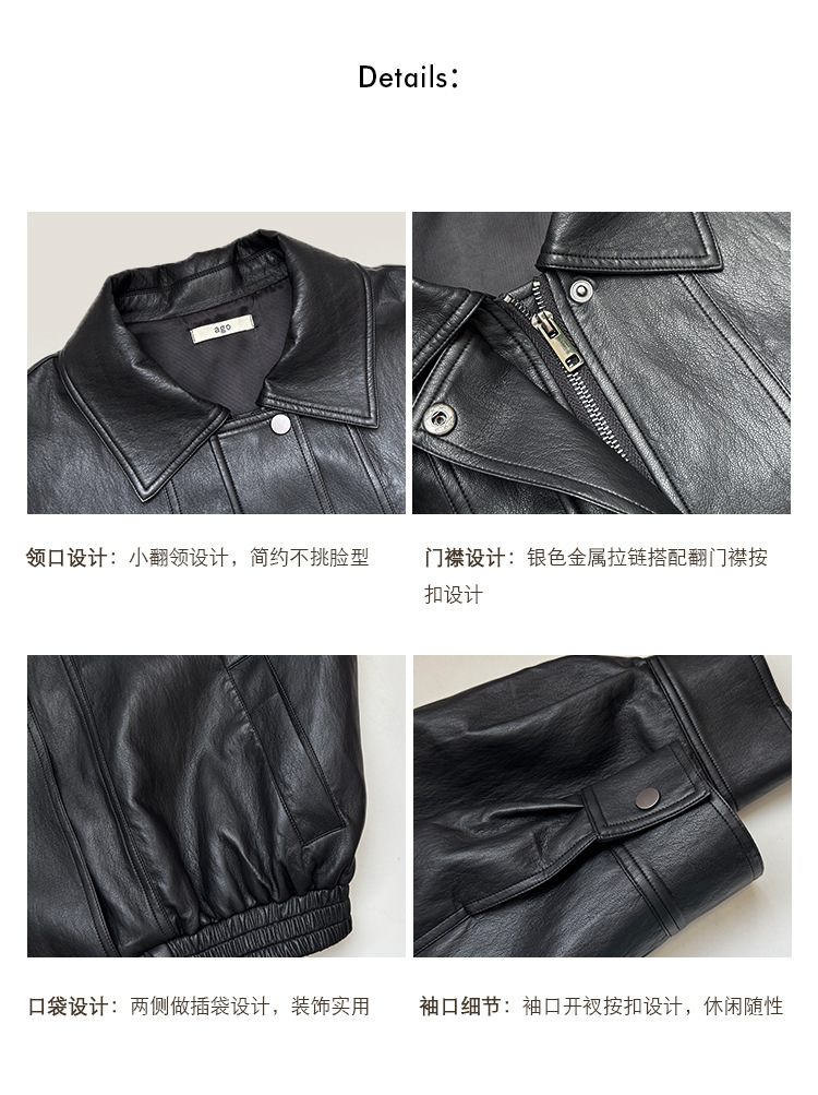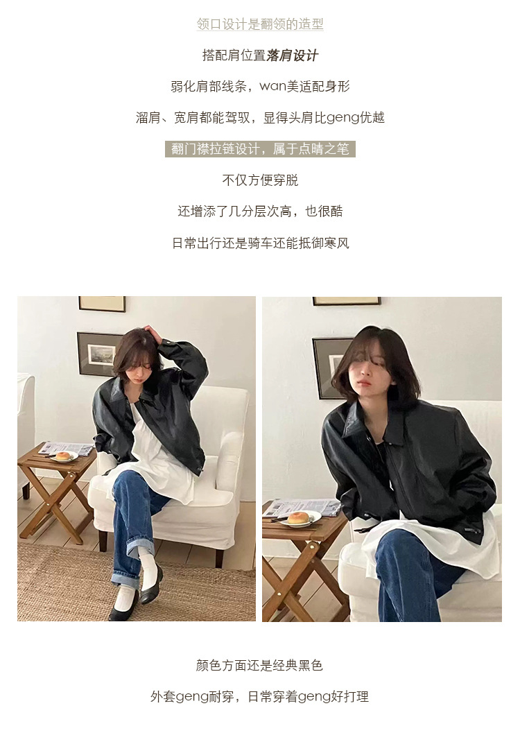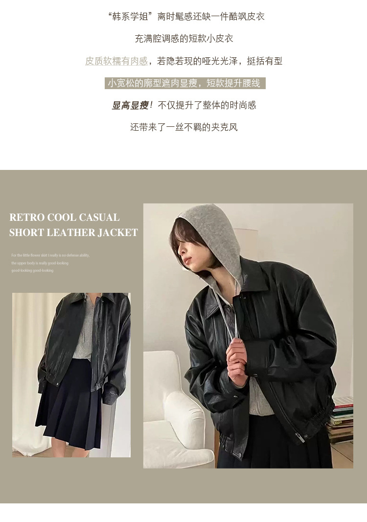 韓国東大門ag*o レトロシンプルカジュアルクールレザージャケット 多用途ラペルジッパーバイク風ショートジャケット 秋