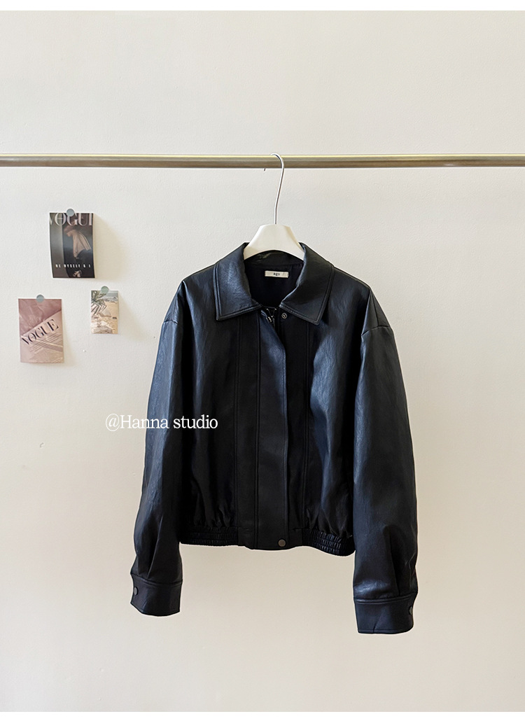 Yブランド輸出品質 韓国under*on2026春秋レトロラペルカジュアルレザージャケット