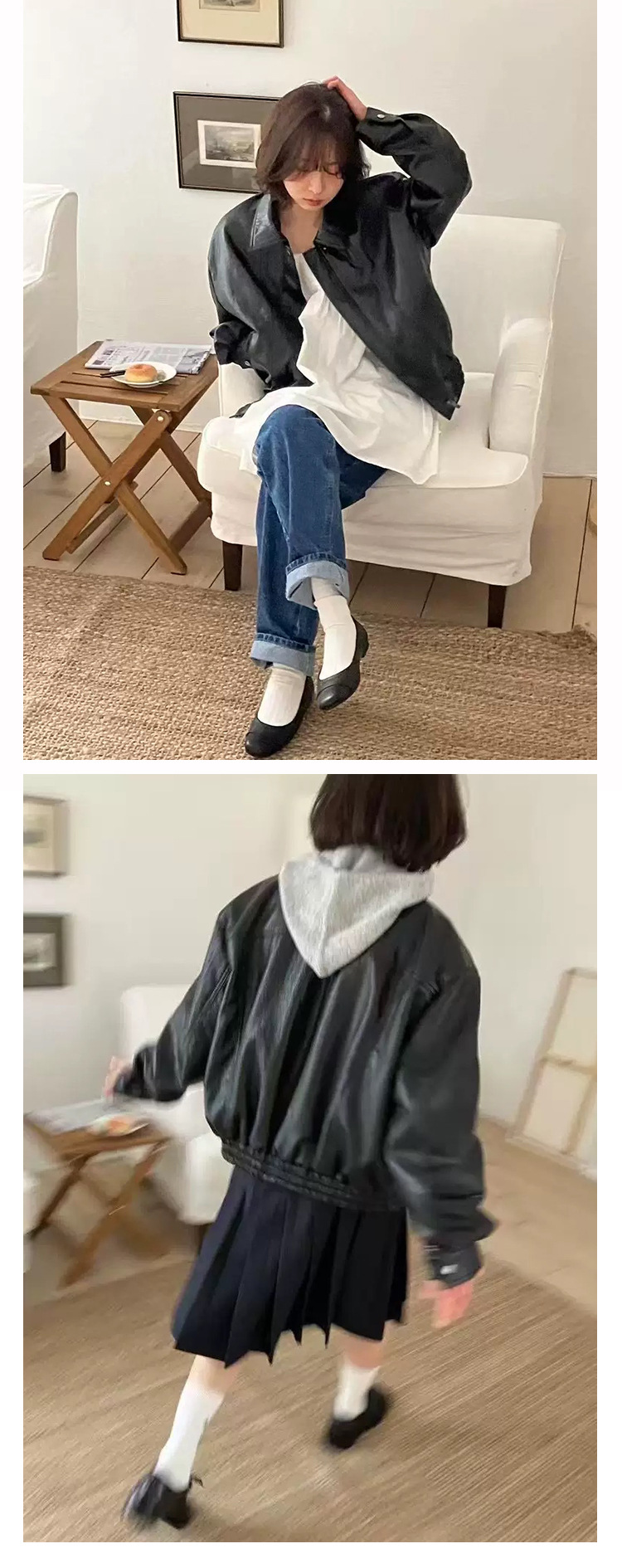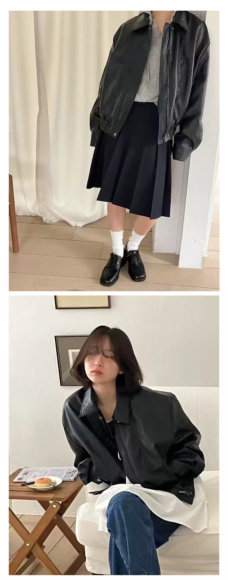 【高品質Y単品】2025秋 韓国modestmo*od プロテインレザー ジャケット ゆったりジャケット