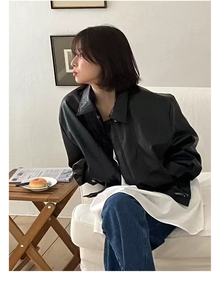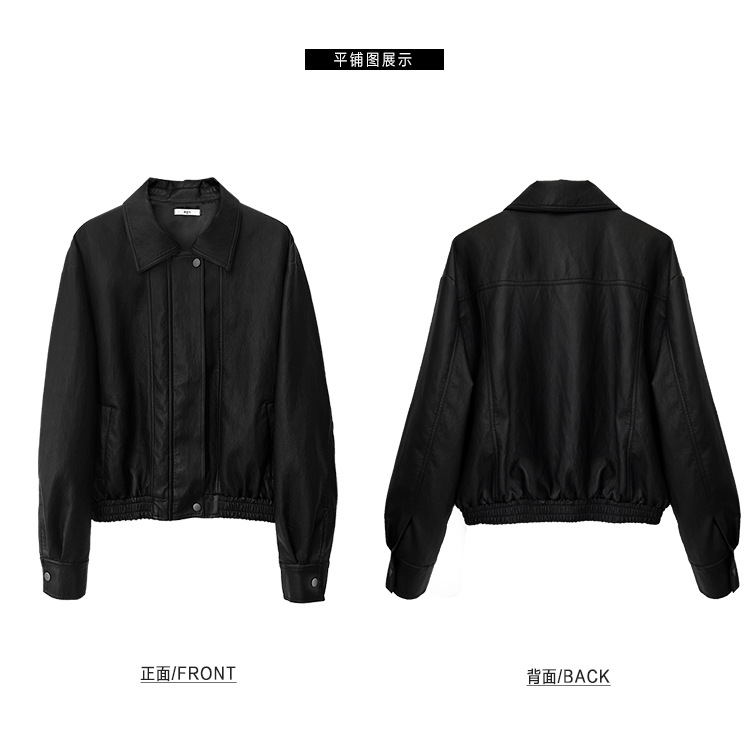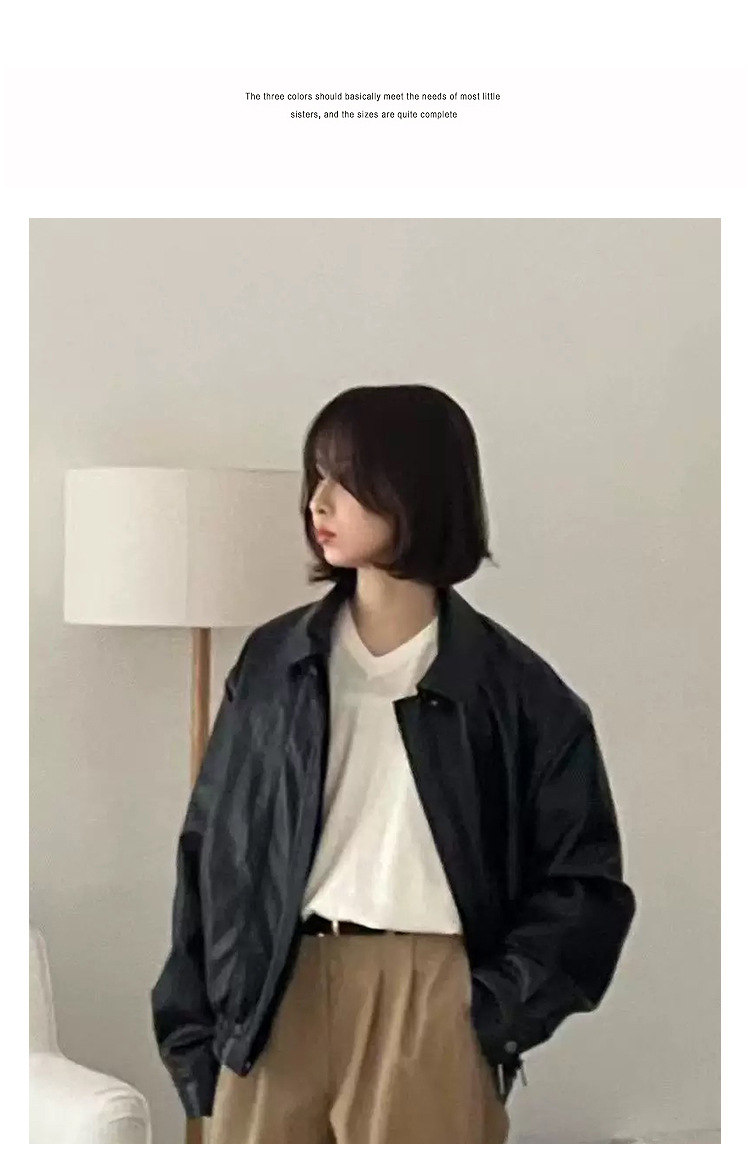 韓国風レトロラペルPUショートレザージャケット 2026春秋 小柄な方向けゆったりカジュアルジャケット レディース
