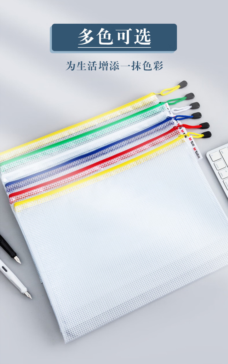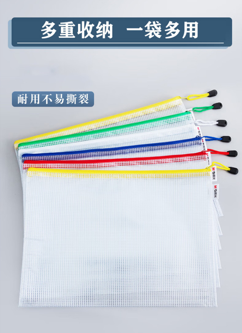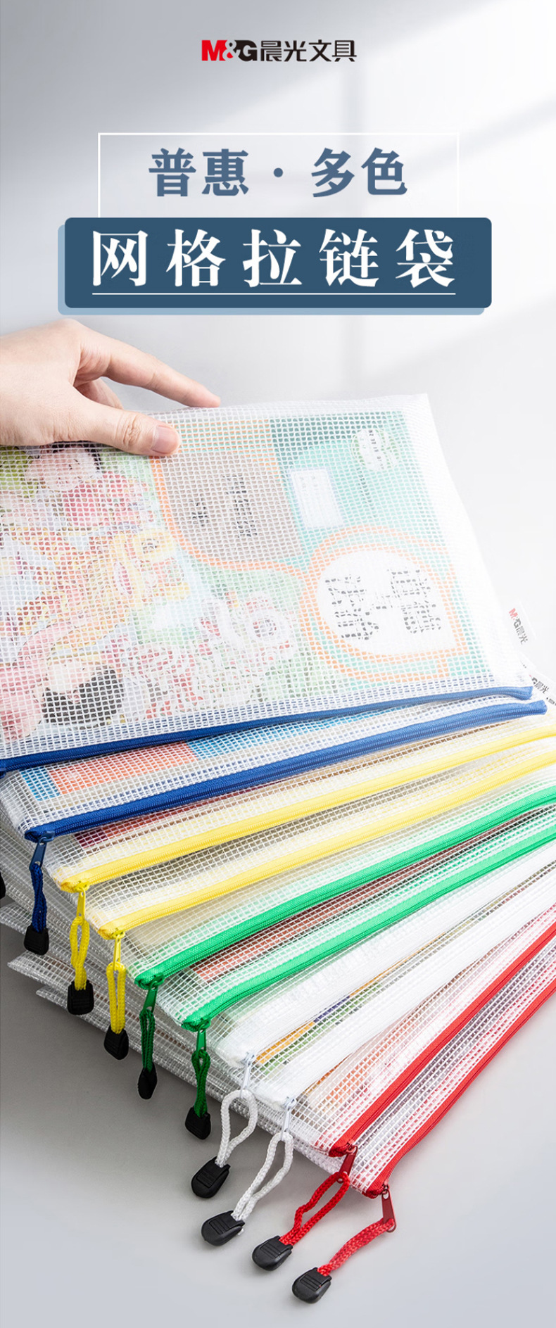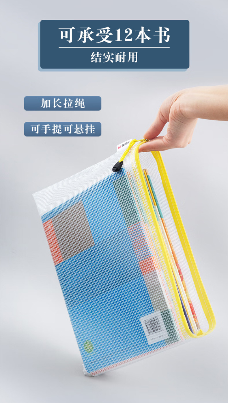晨光ADM94506网格拉链袋大容量A4文件袋资料收纳袋PVC手提袋