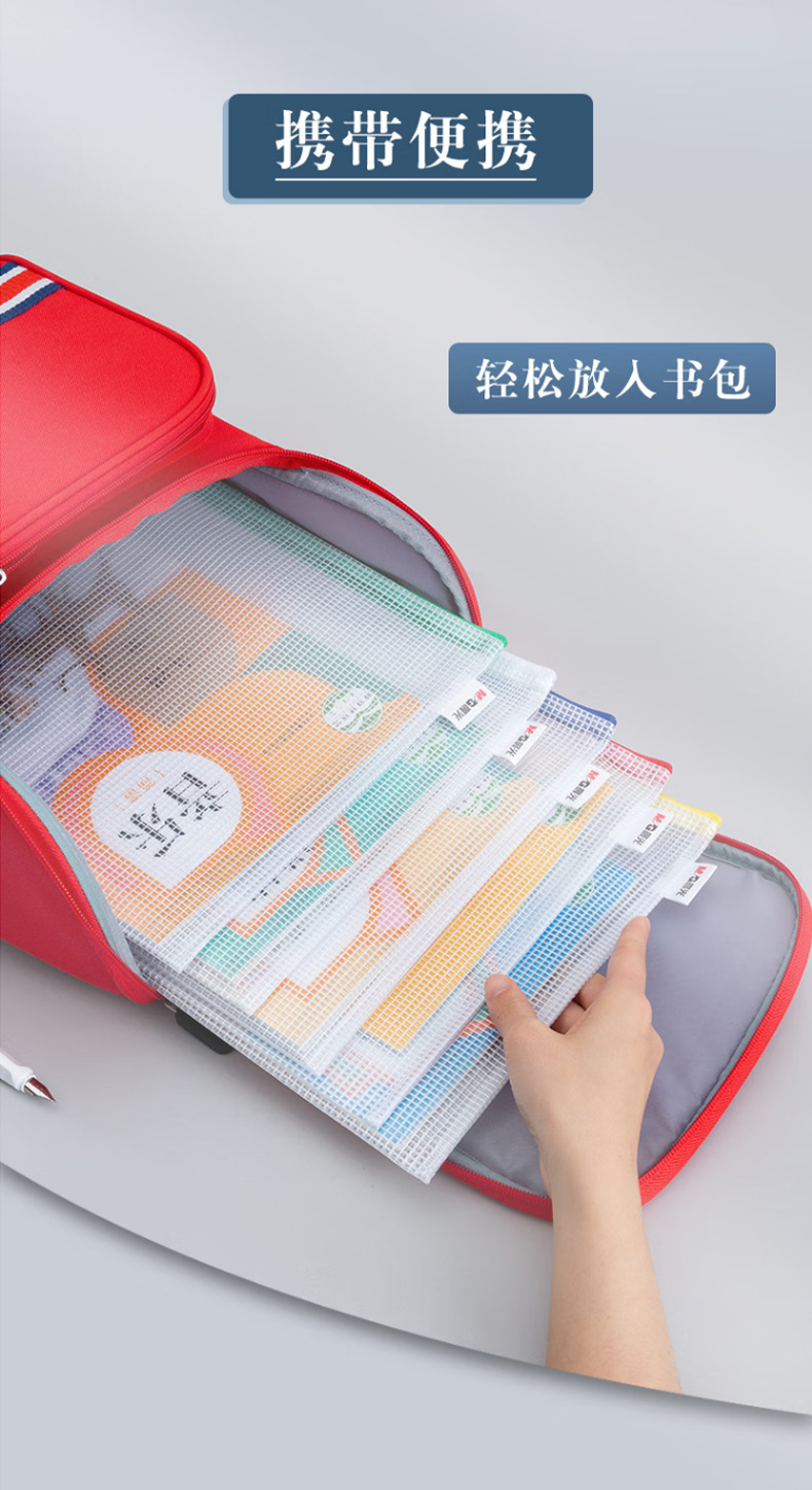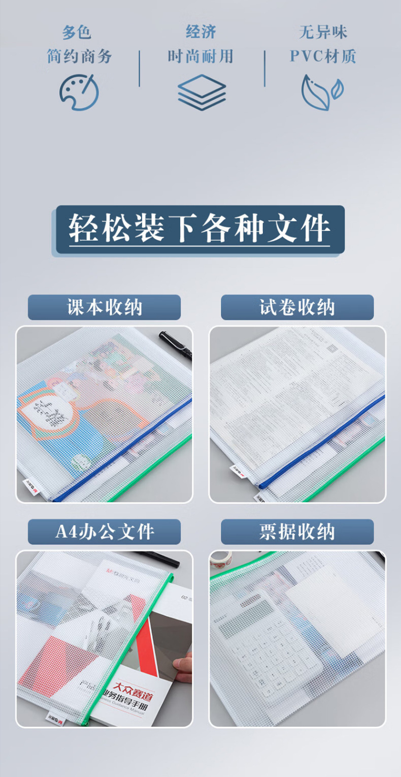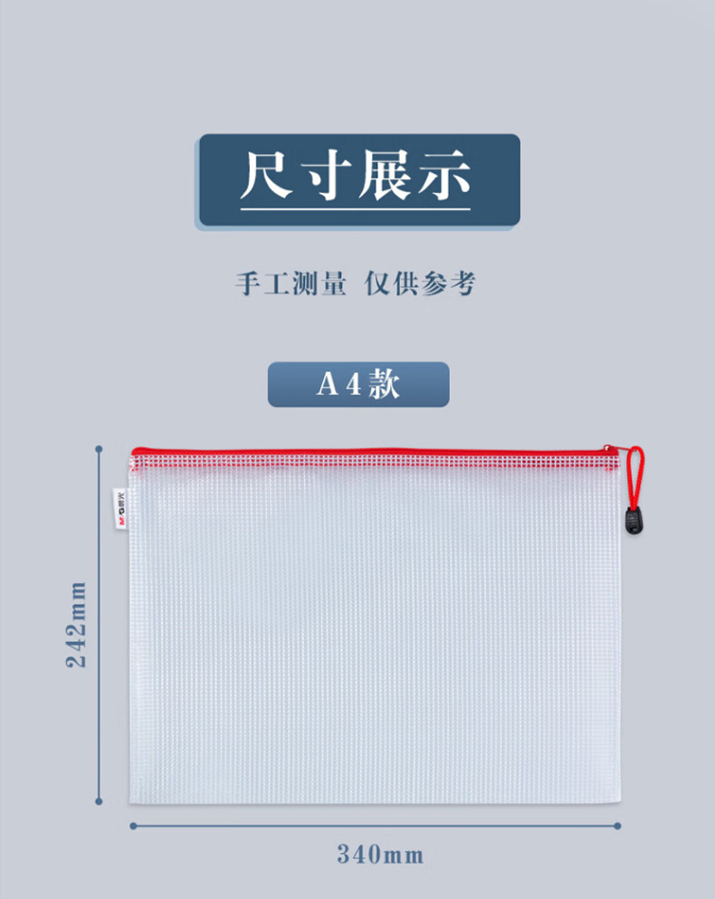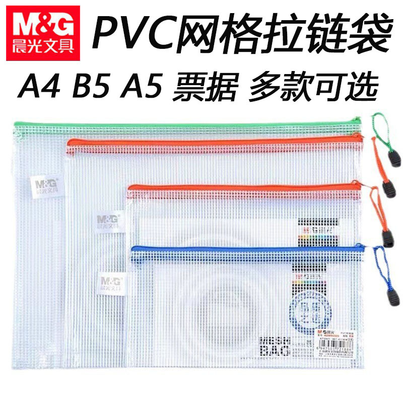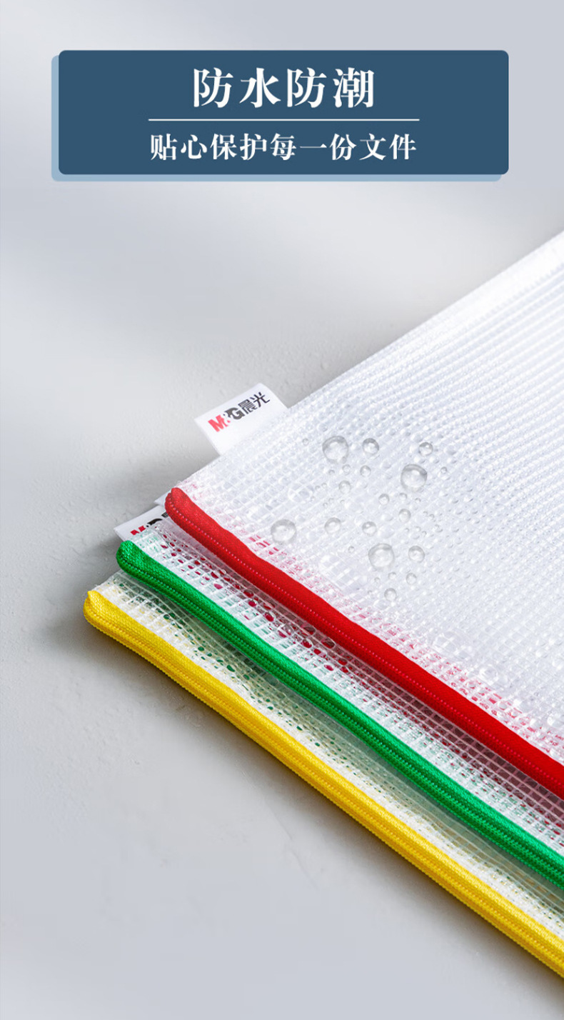 晨光ADM94506网格拉链袋大容量A4文件袋资料收纳袋PVC手提袋