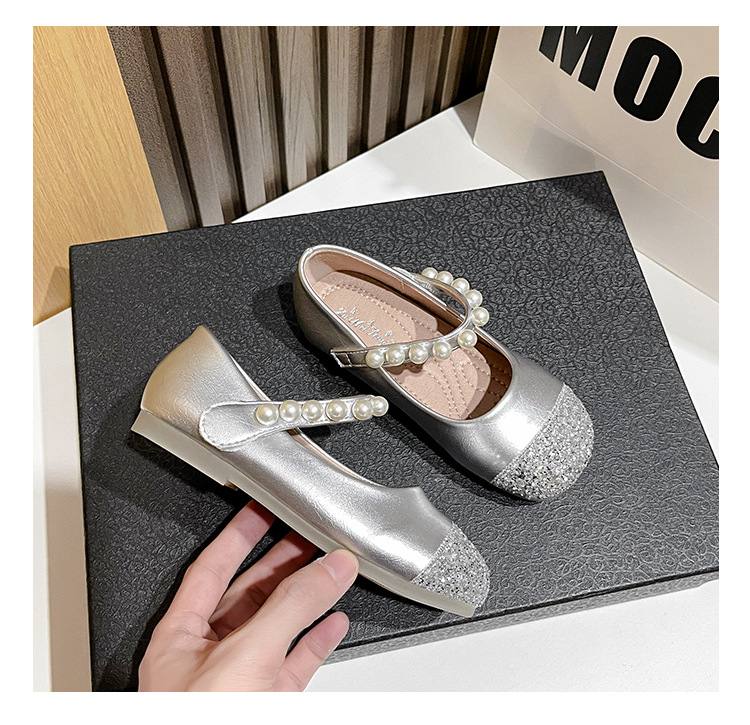 女の子ハイヒール2025春の新しい子供の靴の柔らかい底の女の子は王女の靴の女の宝の靴を演じます。
