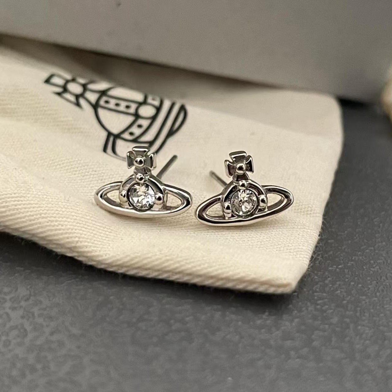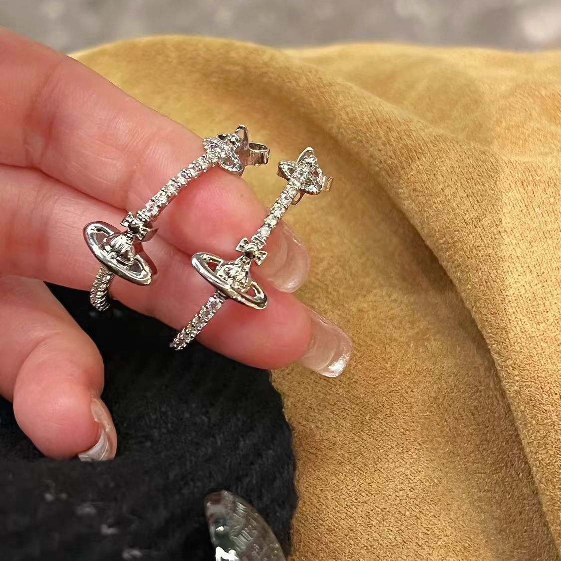 西太后シルバー針ジルコン土星 C 字型イヤリング女性の誇張されたデザインイヤリングライト高級ハイエンドイヤリング