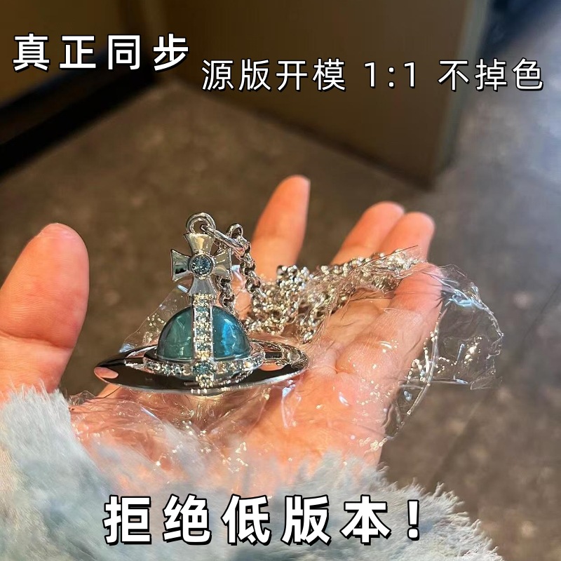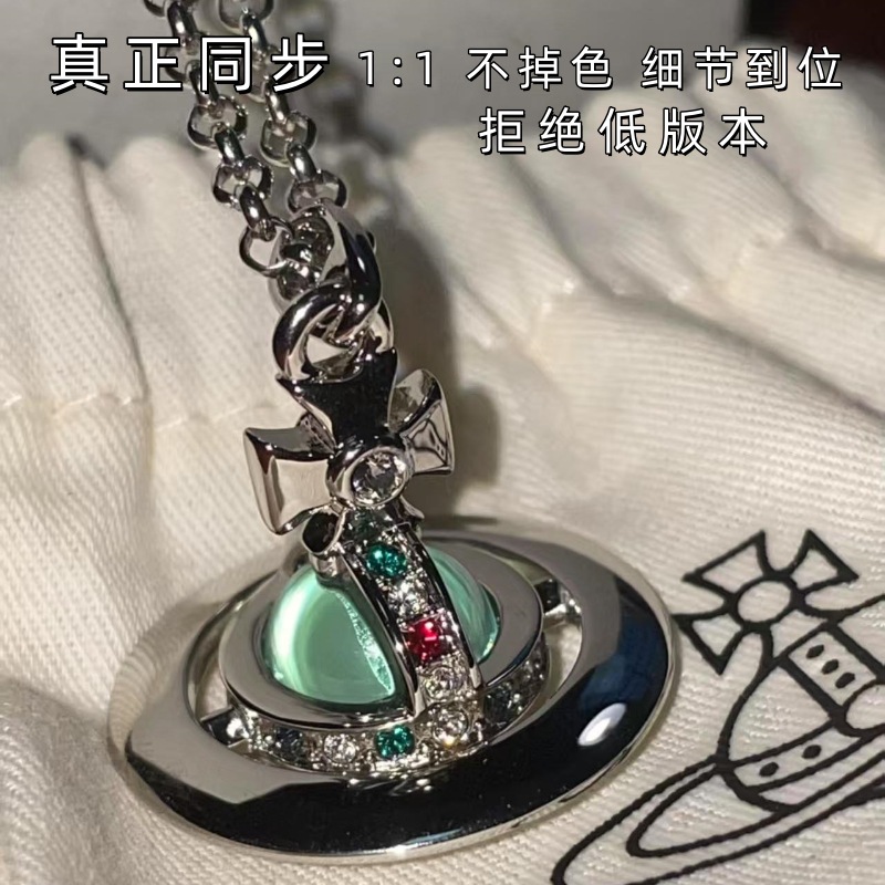 高版本西太后大中小号薄荷绿新款土星项链轻奢高级星球项链复古