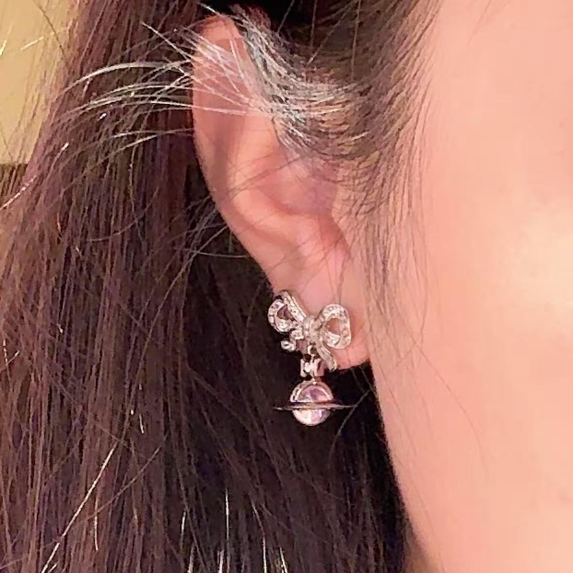 西太后 1:1 ハイバージョンリボン立体土星イヤリング女性のファッションパーソナライズされた惑星イヤリングメーカー直送