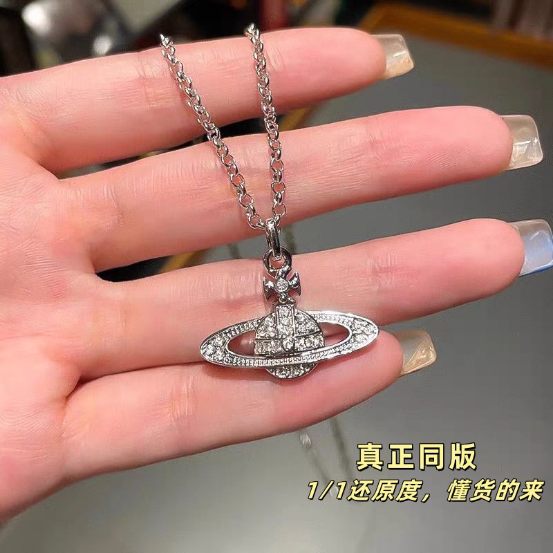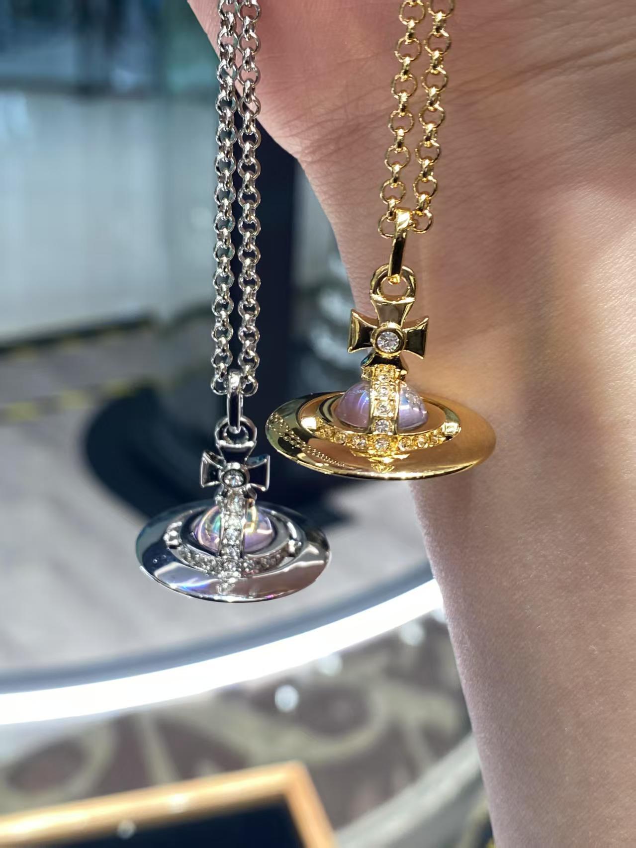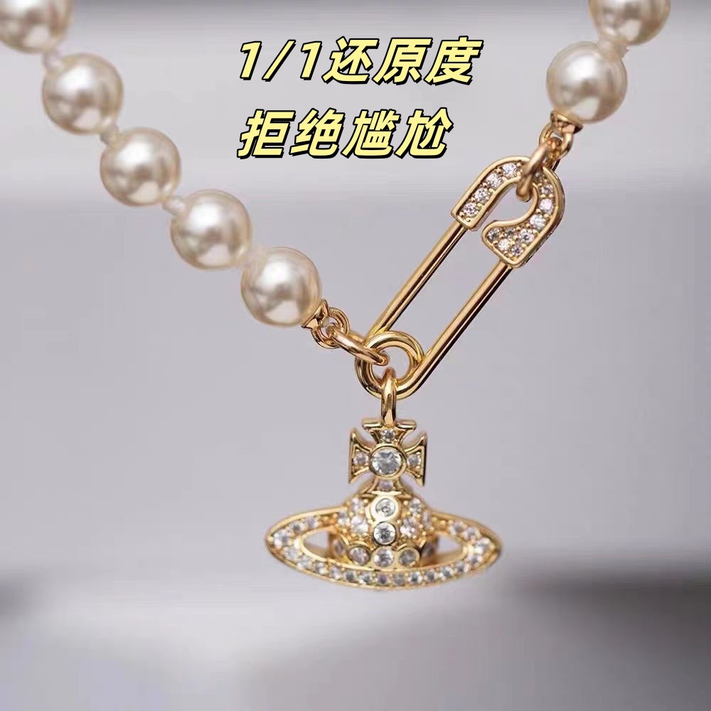 【厂家直销】西太后高版别针珍珠项链不掉色土星吊坠厂家直发批发