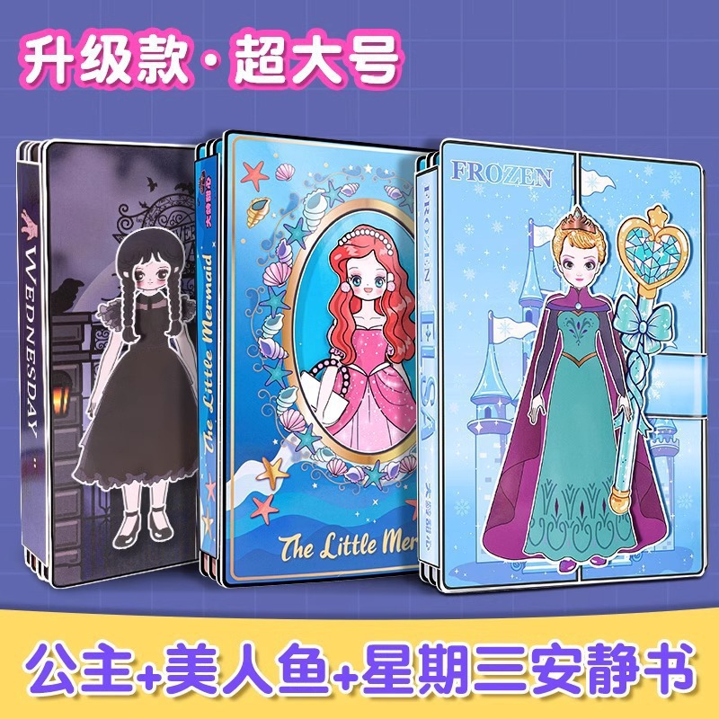 超大本免裁剪安静书美人鱼艾莎公主豆豆本diy手工换装游戏书女孩
