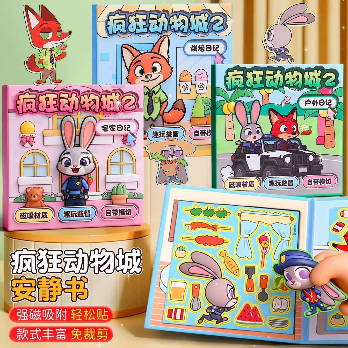 疯狂动物城儿童磁力安静书朱迪尼克2025新款男女孩免裁剪益智玩具