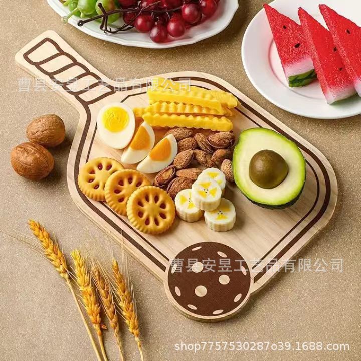 木製ラケット型トレイ レストラン パーティー デリ フルーツ スナックトレイ ハンドル付き 両面まな板