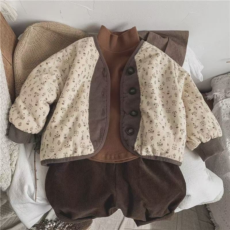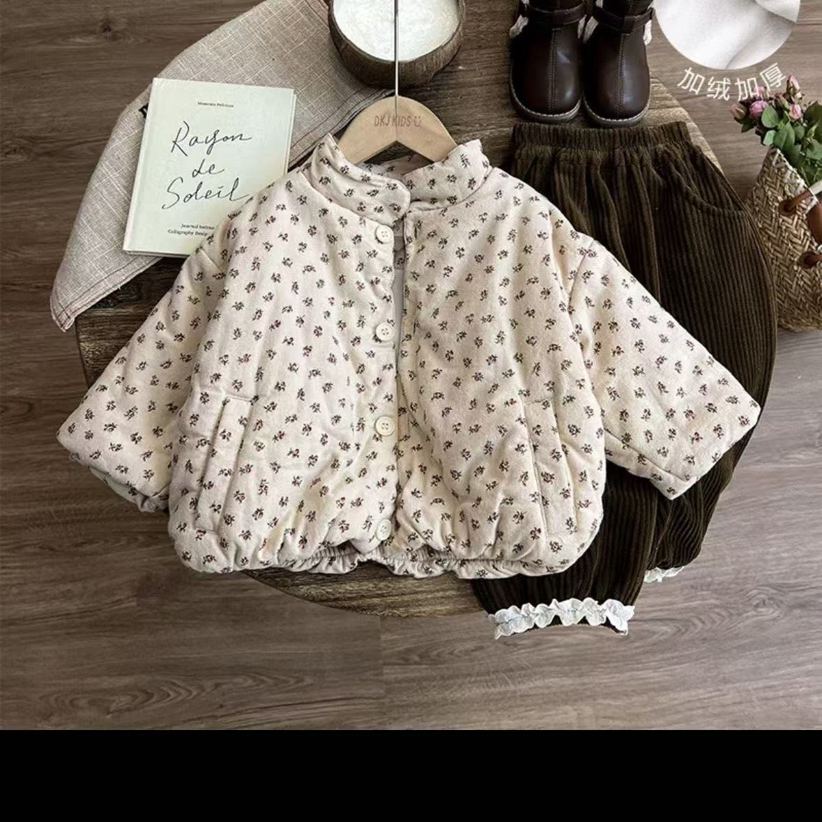 女童加绒外套秋冬款新款加厚儿童冬装棉服女孩小清新碎花棉衣