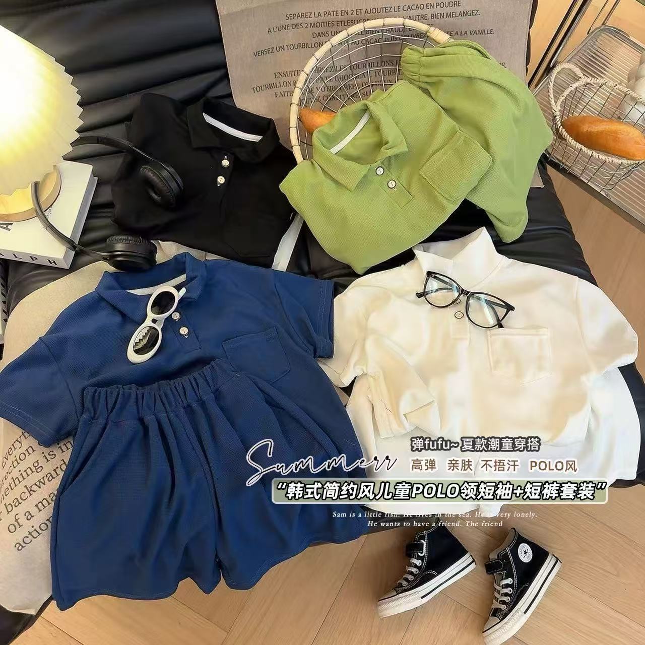 子供用夏半袖ポロスーツインスタイルストリート2点セットカジュアルスタイル多用途男の子と女の子のファッショナブルなスタイル