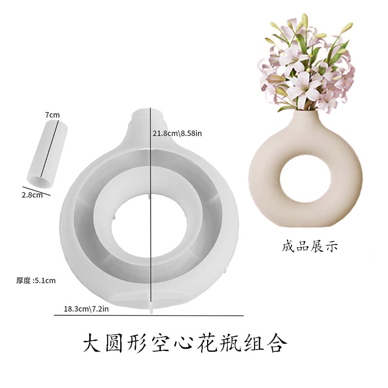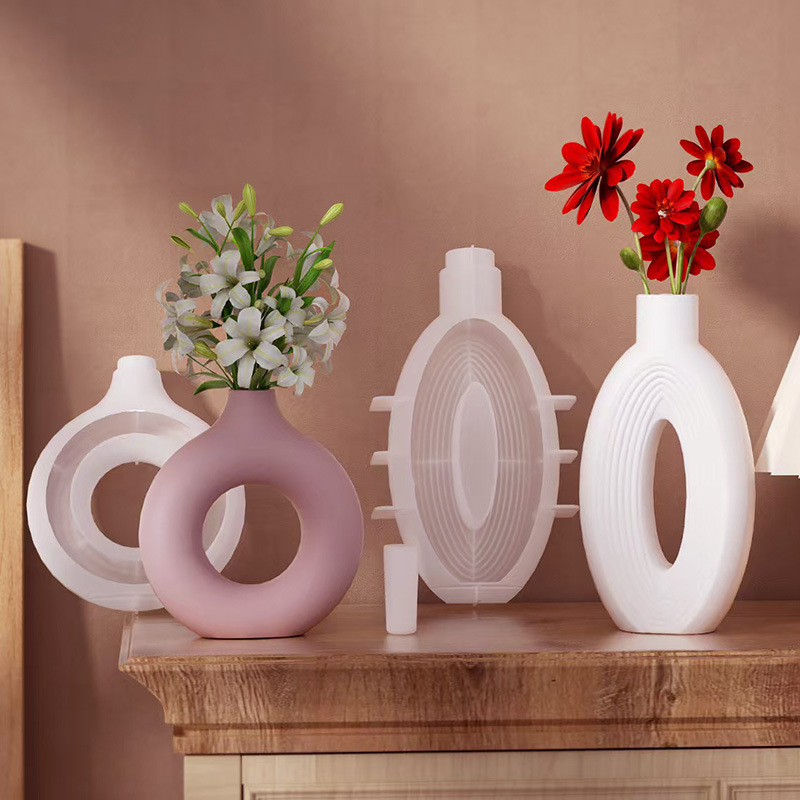 北欧円花瓶シリコン金型楕円円縞ins風大振り子ドーナツ生け花花瓶磨き