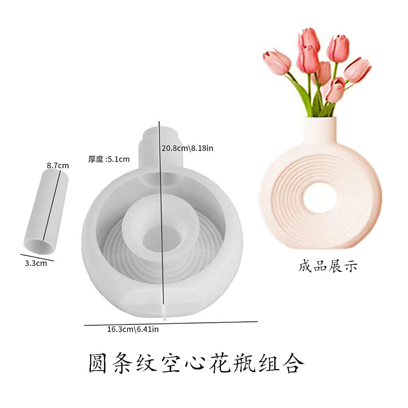北欧ins円中空大花瓶シリコン金型滴ゴムdiy楕円縞花瓶石膏家庭装飾品