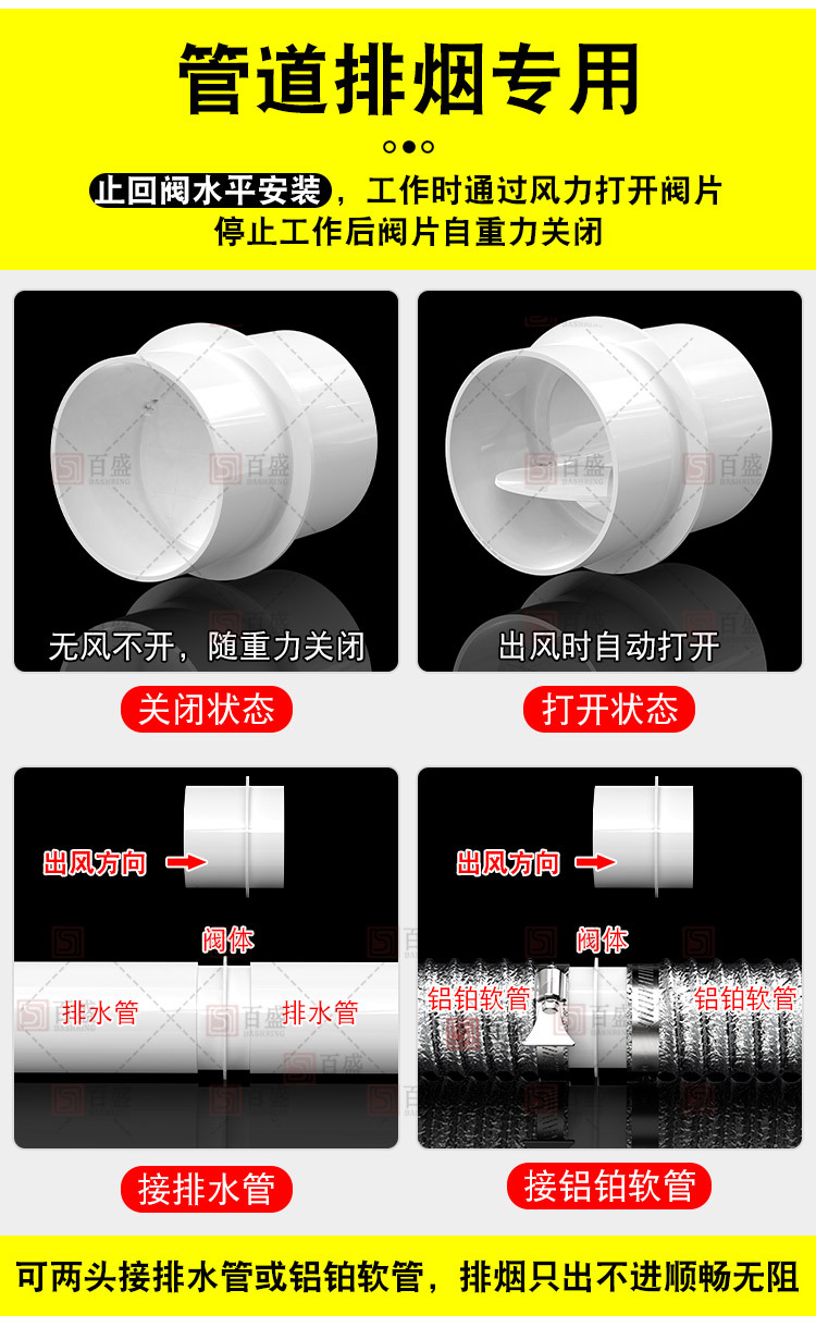 160pvcパイプ逆止弁キッチンレンジフード公共煙道逆止弁防煙宝排煙口チェック弁