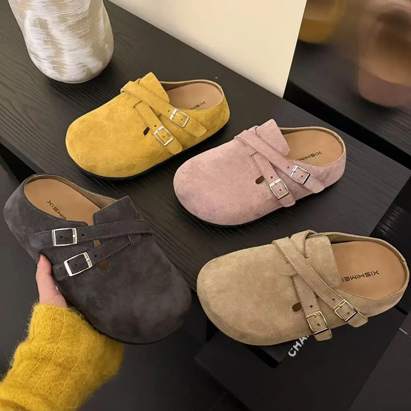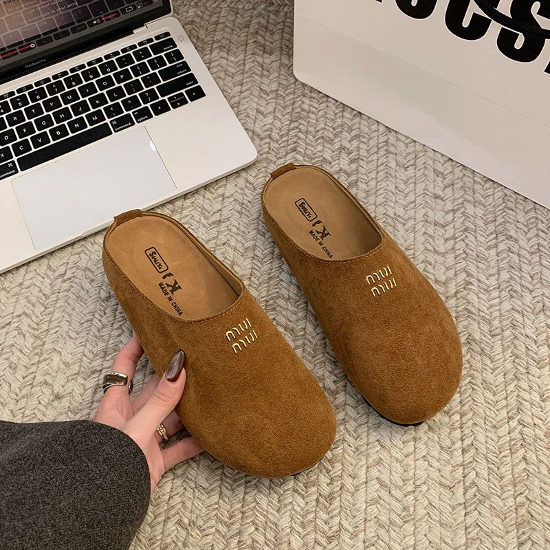レトロな包頭のベーケンのスリッパの女性2025新型の春と秋のレジャーは砂の皮の快適なマンゴーの頭の博ケンの半スリッパを磨いています。