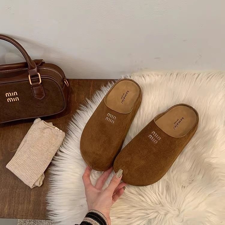 炸街高颜值百搭包头半拖鞋加绒外穿平底穆勒鞋2025新款懒人毛毛拖