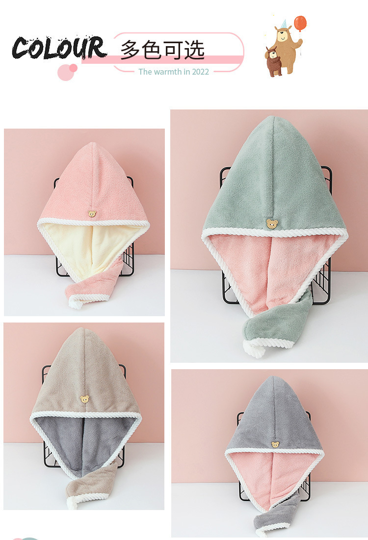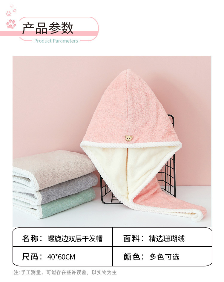 双层双色加厚干发帽珊瑚绒超强吸水柔软速干抗菌浴帽毛巾包头巾帽