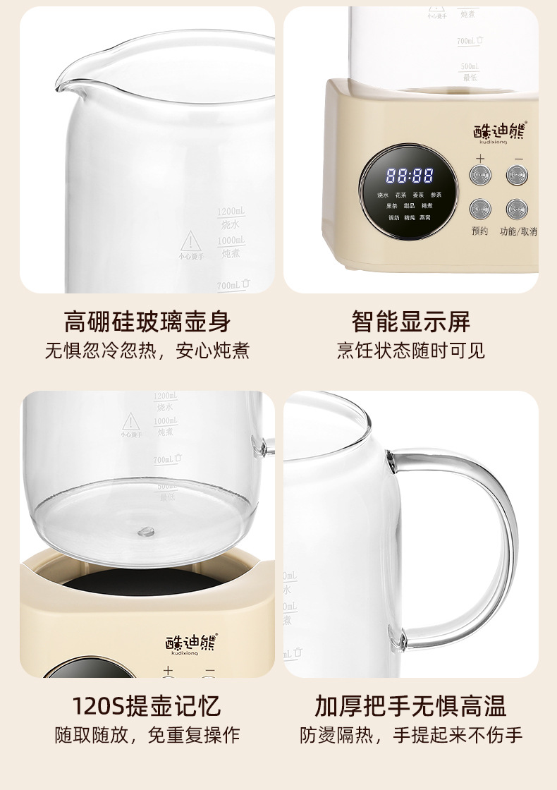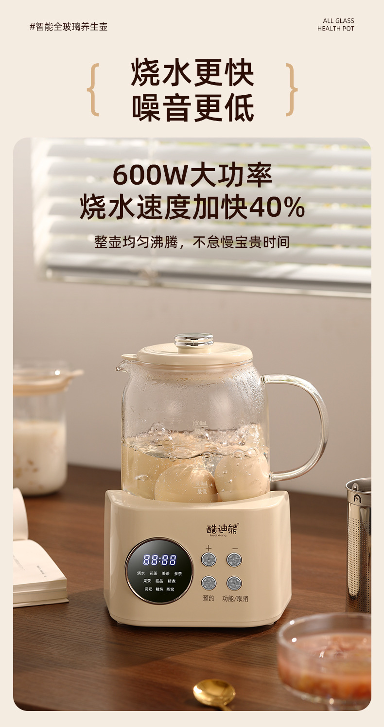 全玻璃养生壶炖煮一体烧水壶小型办公室宿舍电热煮茶壶