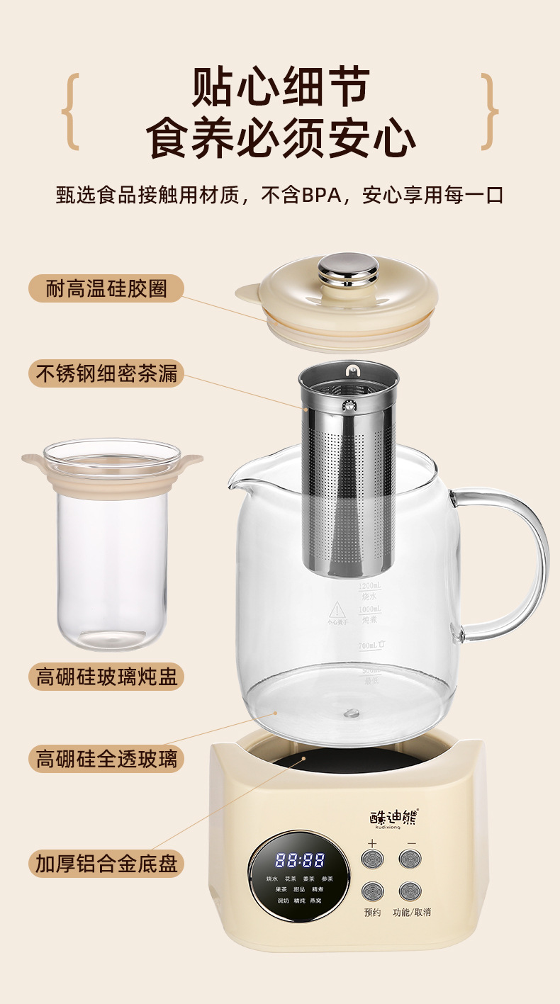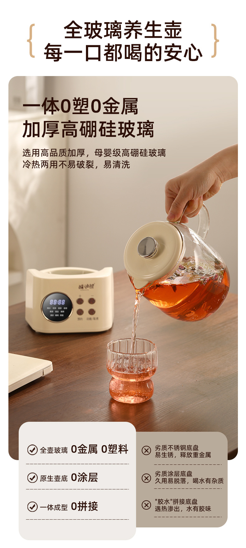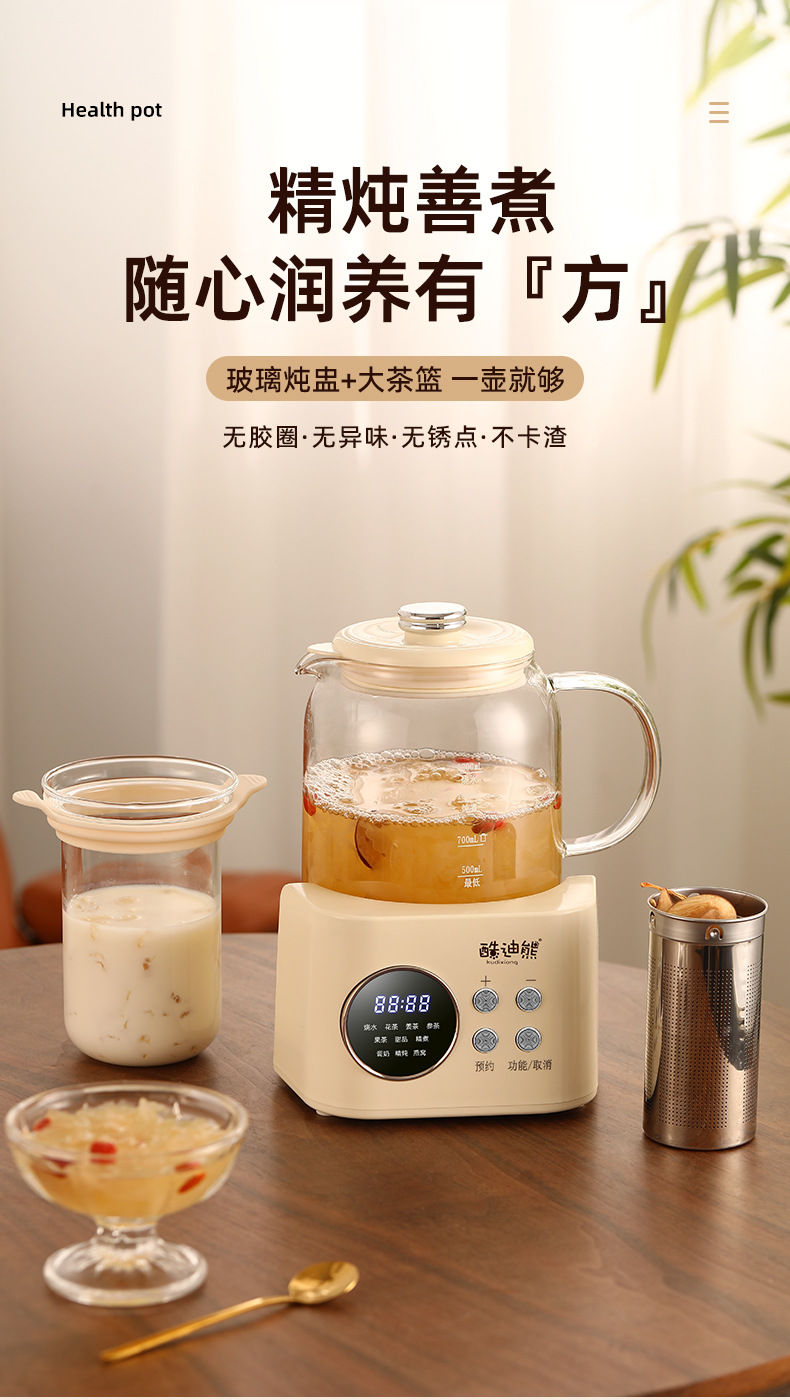 新しい多機能恒温養生ポット家庭用ガラス湯たんぽオフィス小型茶器養生カップセット