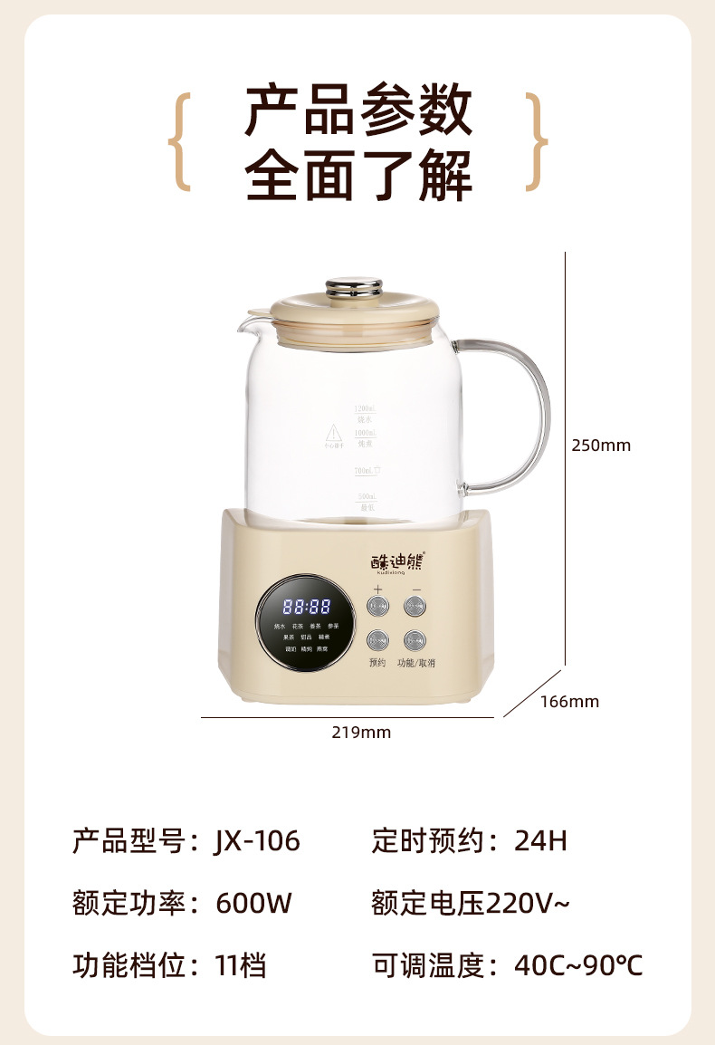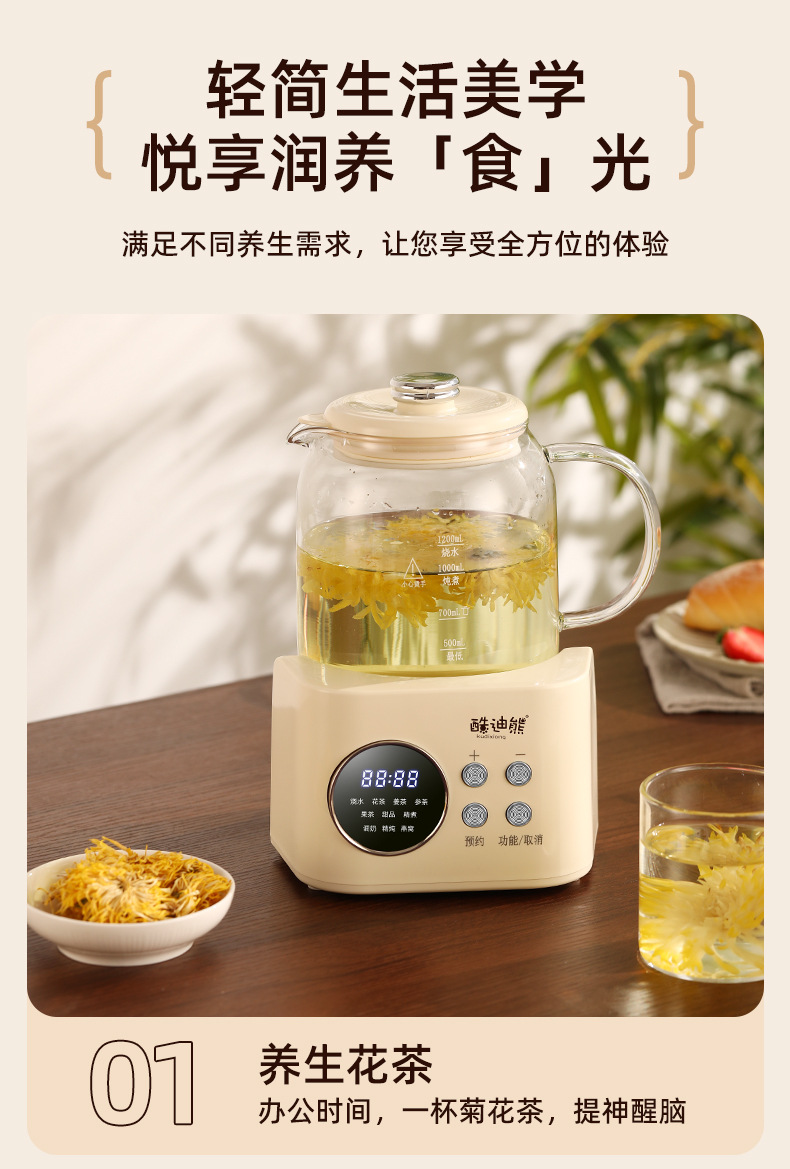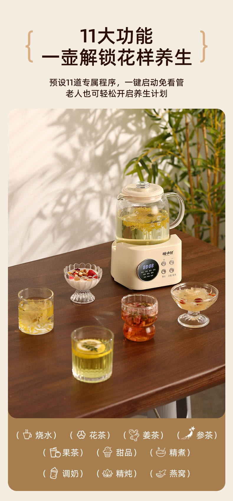 新しい多機能恒温養生ポット家庭用ガラス湯たんぽオフィス小型茶器養生カップセット