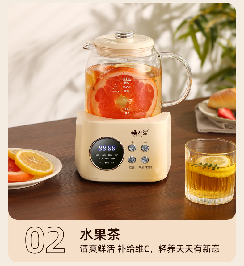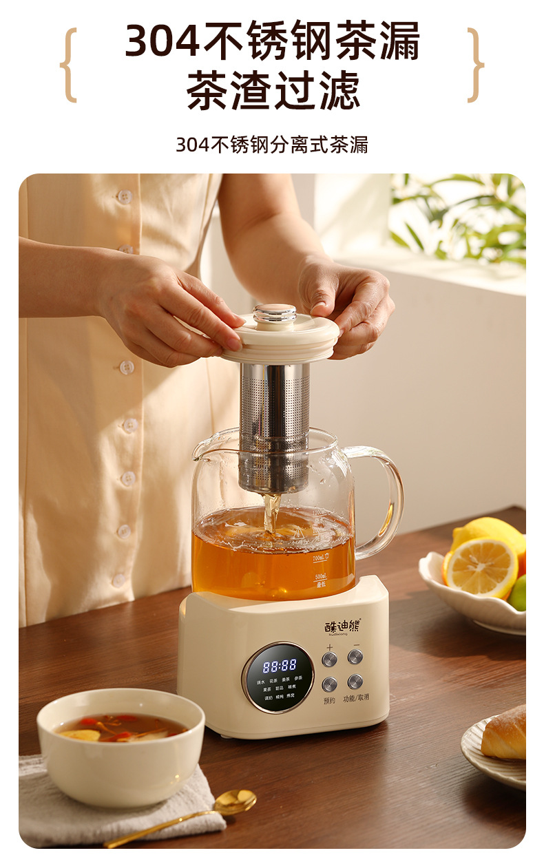 ローター小型ラウンドトン健康ポットオールガラスホーム小規模オフィスシチュー一体型ティーメーカー 2025 新モデル
