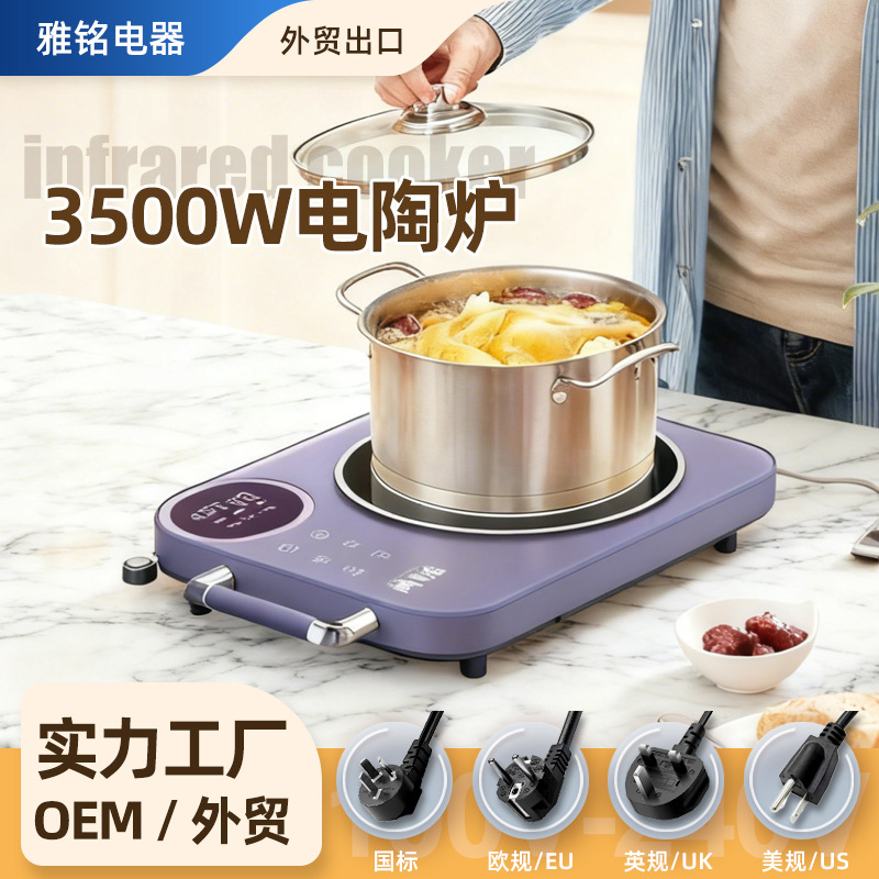 家庭用電気セラミックコンロ、3500Wのハイパワーで炒め物が得意、鍋を選ばない電磁調理器、多機能お茶煮コンロ、防水仕様。